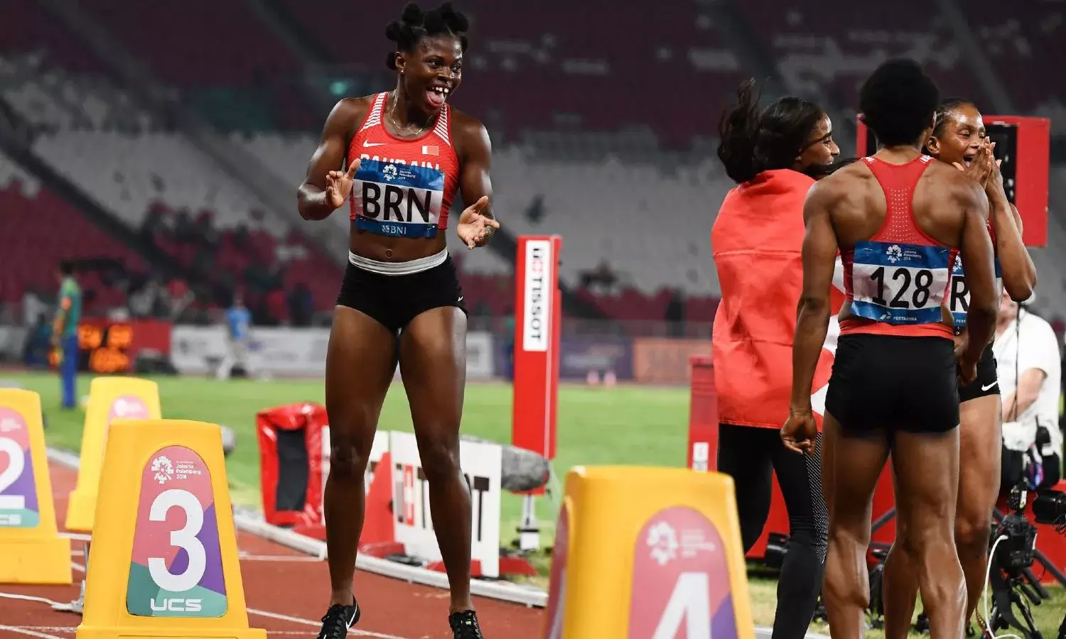 Naturalised athletes of Bahrain and other Gulf nations have established their dominance over Asian athletics since the 1990s. Here, Edidiong Odiong, the one who defeated Dutee Chand twice in 2018, celebrates. (File Photo/Getty)