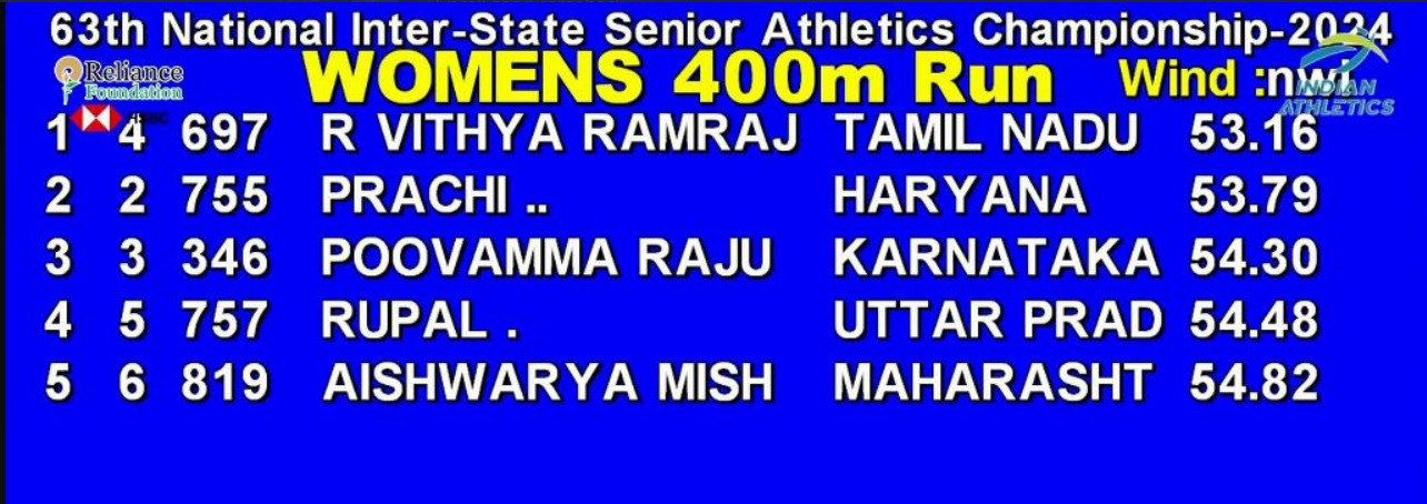 It also happens to be the second best timing for an Indian ever in the women's 400m category.