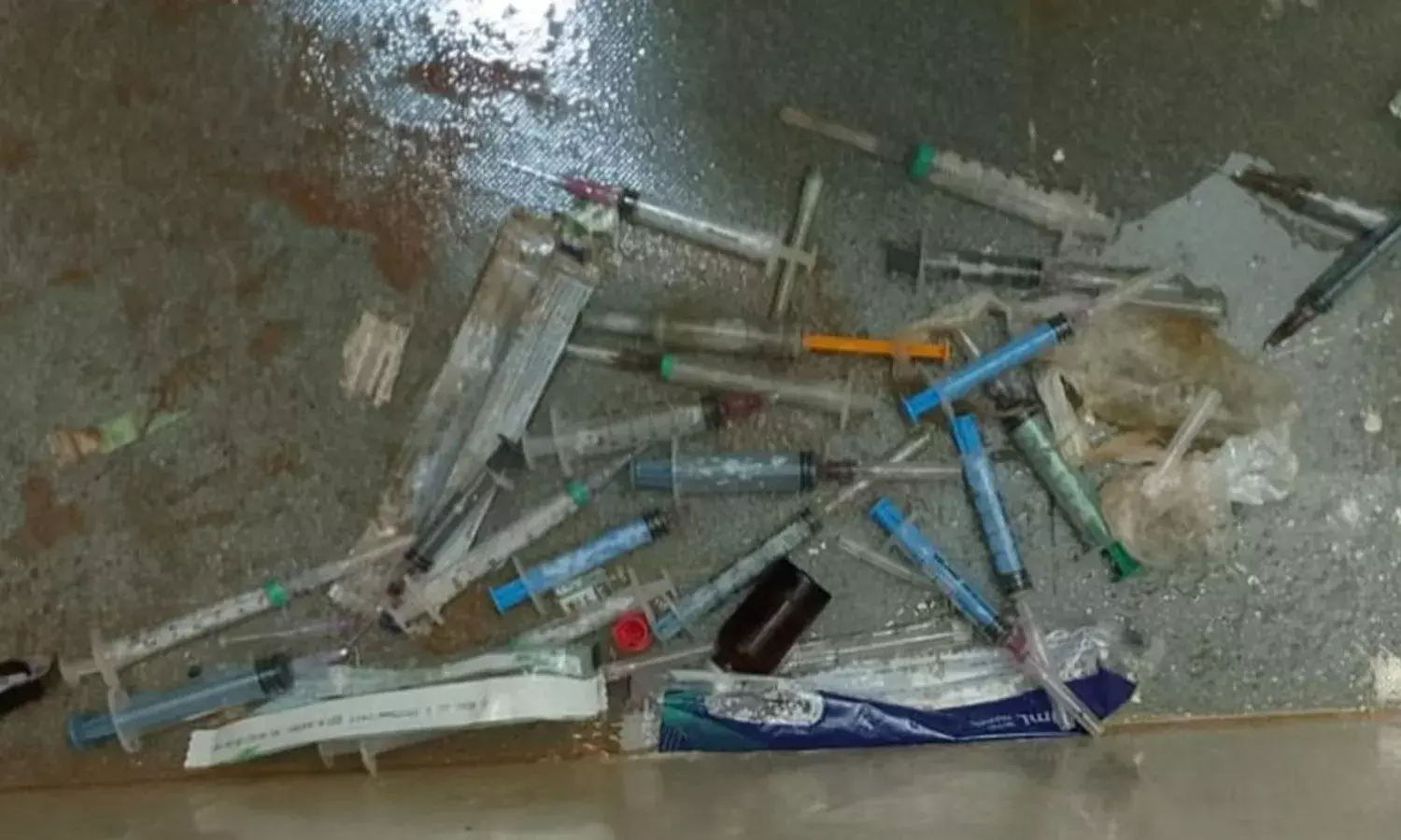 Photographs of used syringes and vials scattered in the washrooms of the KIIT Stadium have already gone viral since Thursday night.