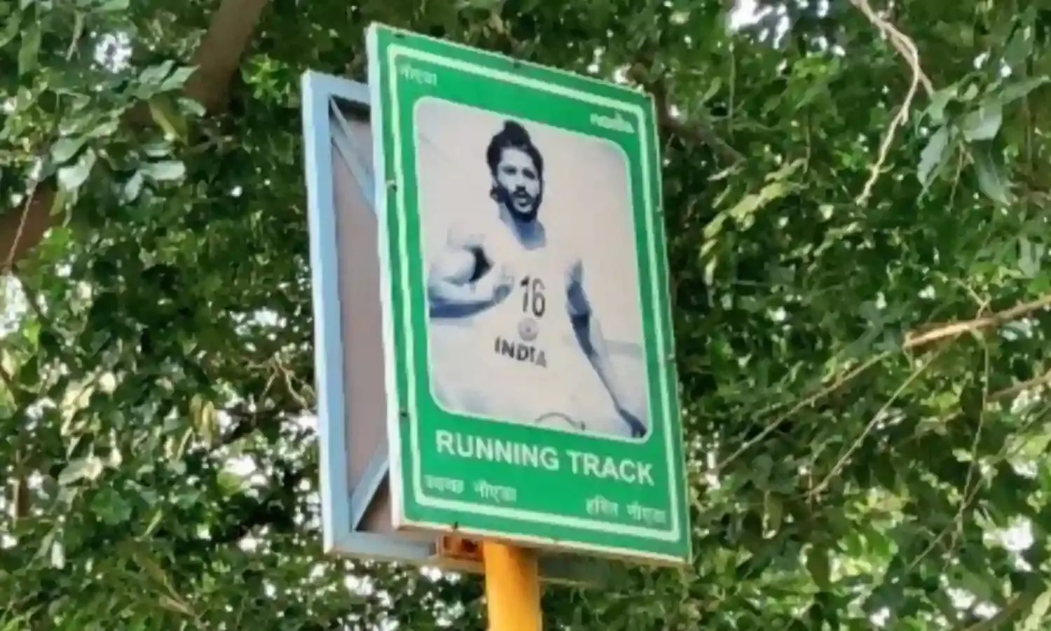 Anisha Dutta, a Twitter user, shared this picture which has been put up along the running track, and she asked Noida Authority to replace these boards with Milkha Singh rather than Farhan Akhtar.