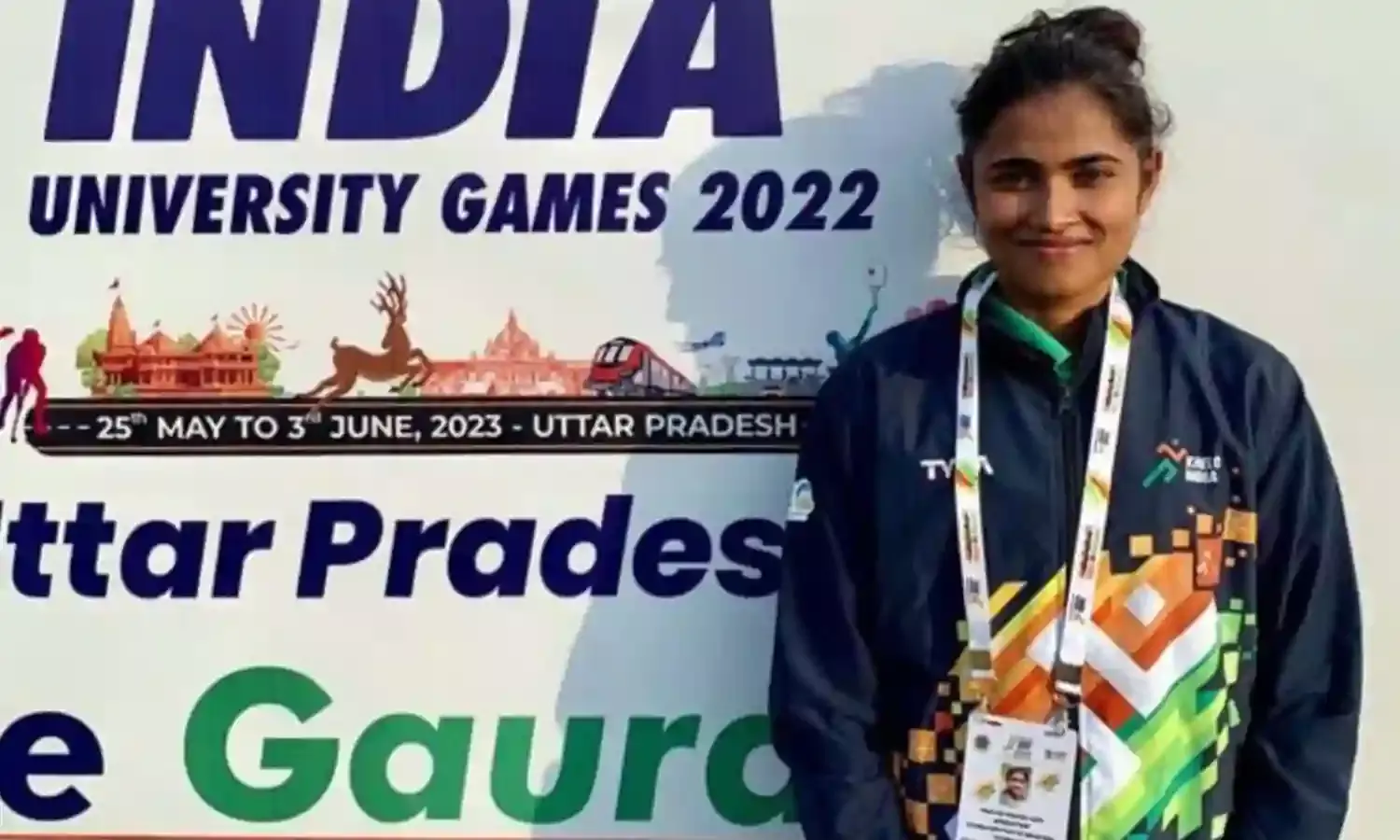 Pragyan Sahu with her 100m hurdles gold medal at the Khelo India University Games