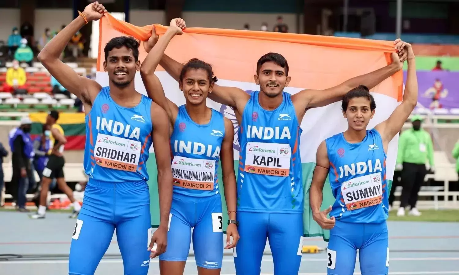 Priya Mohan (2nd from left) helped India win a first-ever relay medal at the World U-20 Championships (AFI)