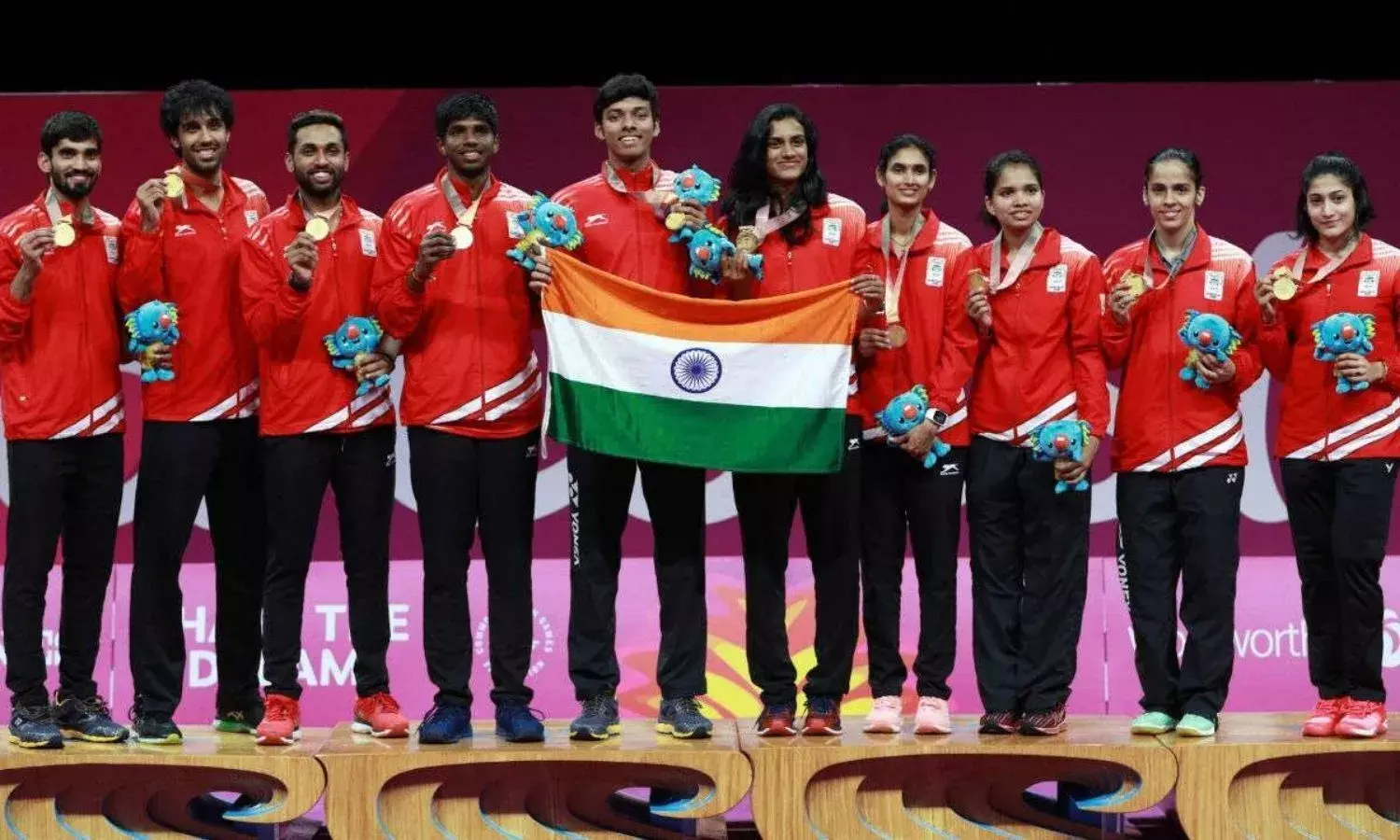 The 2018 Commonwealth Games gold medal-winning Indian badminton team (Source: Getty Images)