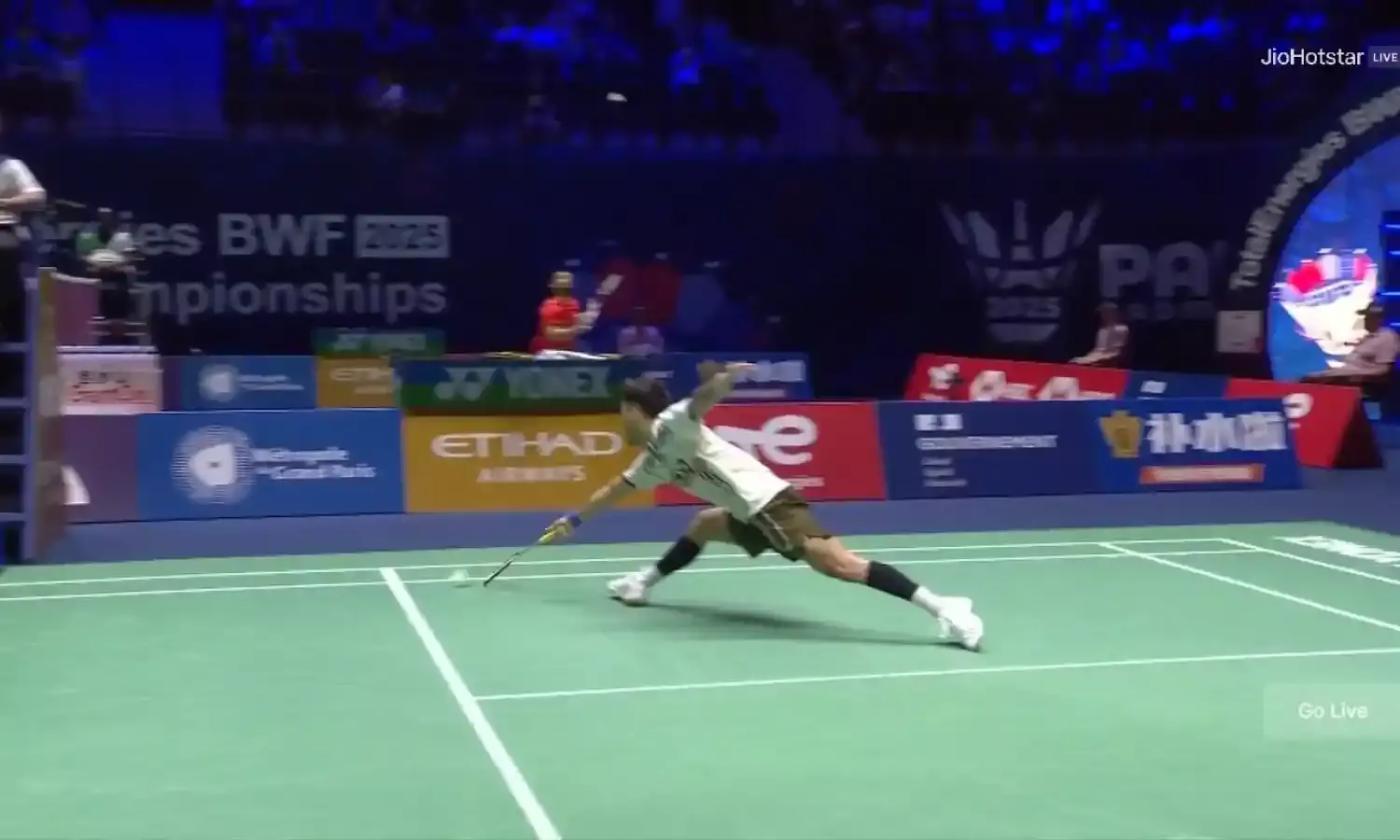 A cross-court drop shot from Shi hit the ground before a stretched Sen returned the shuttle to other side of the court. The Chinese shuttler was taken aback and tried to close off the rally with a smash.