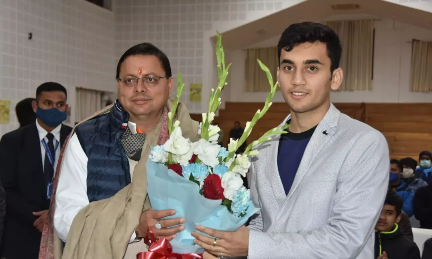 Uttarakhand Chief Minister Pushkar Singh Dhami honoured Lakshya for his achievement at the BWF World Championships, 2021 held in Spain.