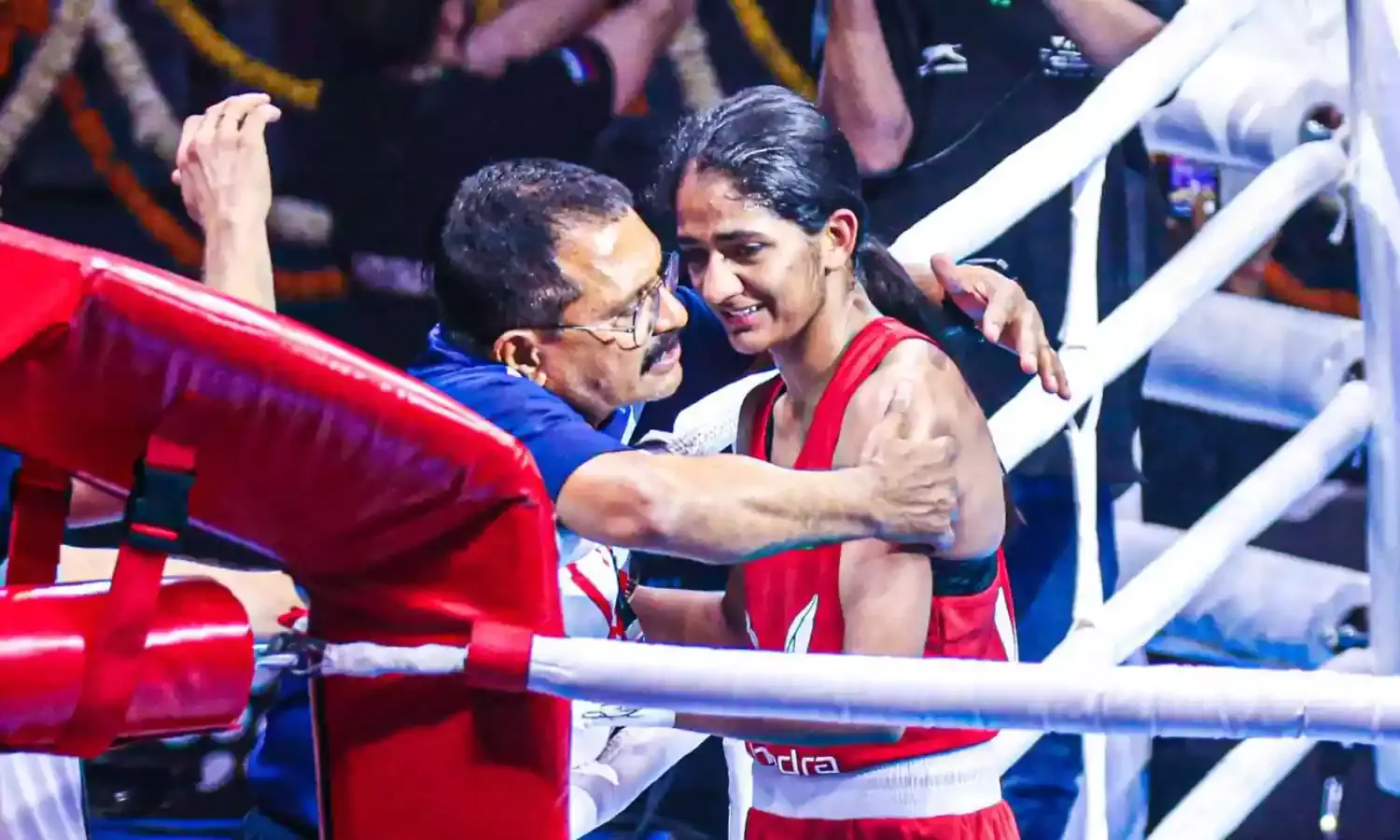 Bhaskar Bhatt with Nitu Ghanghas during the Women's Boxing World Championships. (Source: BFI Media)