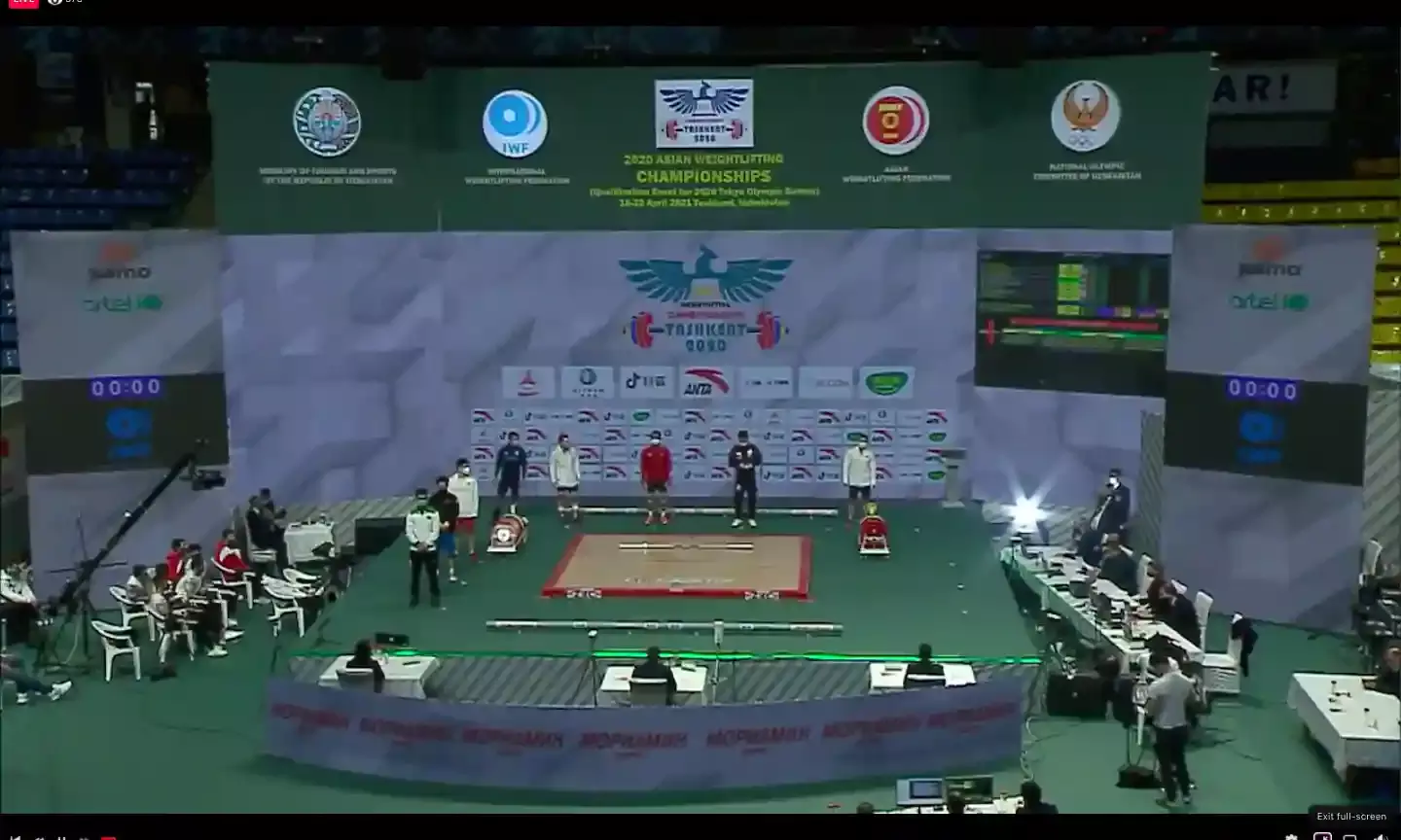 A total of eight competitors get ready for Men's 67kg A category at Asian Weightlifting Championship. India's hopes will be relied upon Jeremy.