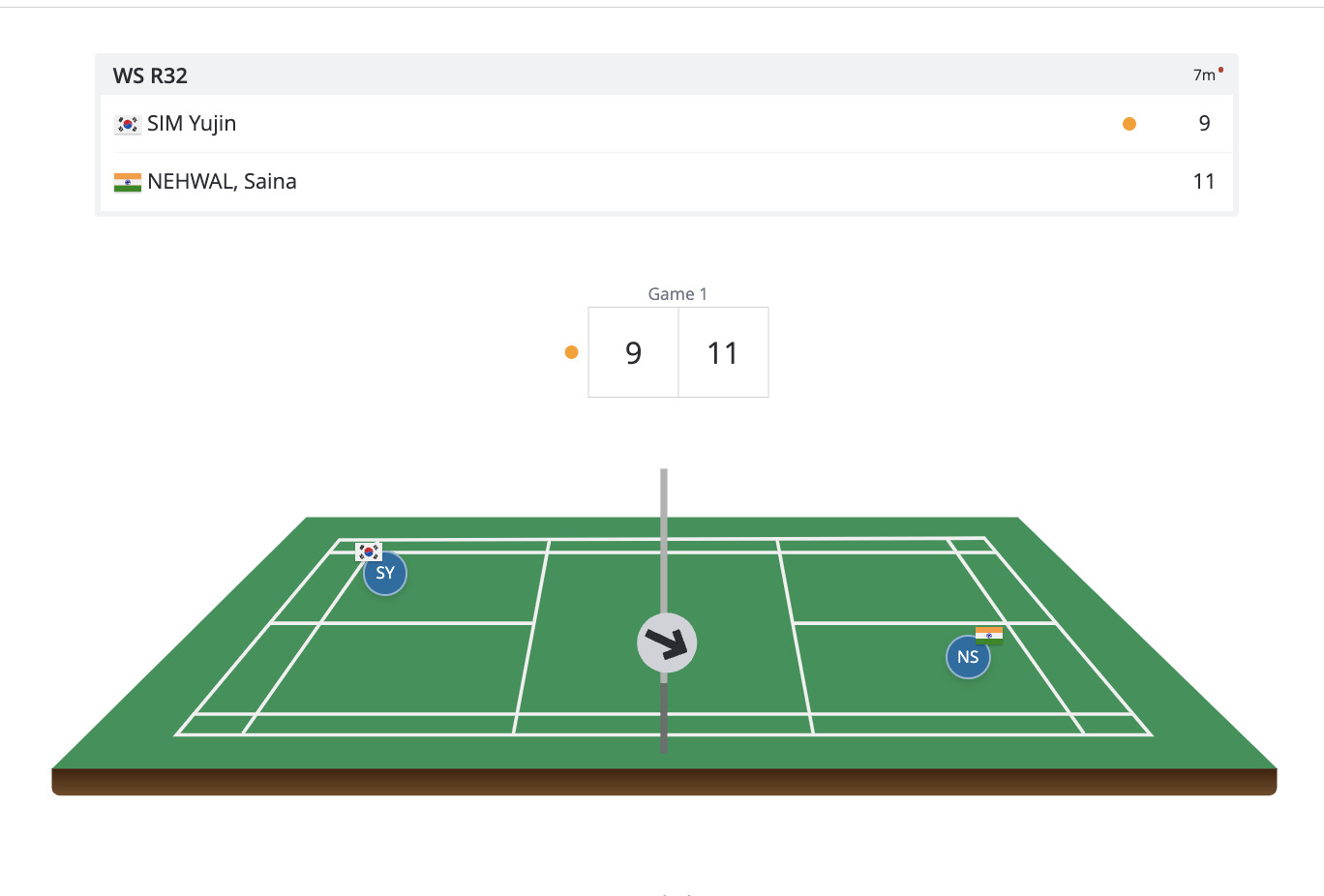 Saina stays ahead by a margin at 11-9. She will need to ensure that Yujin doesn't cover up now after the mid-game break.