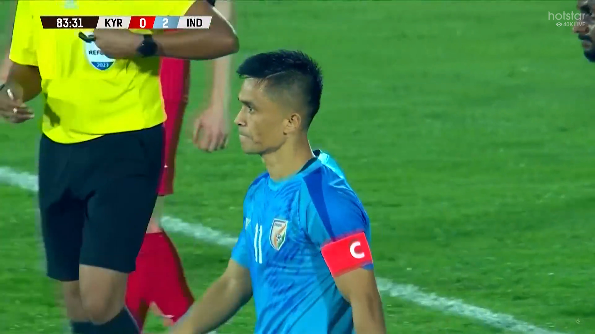 One step, and bang into the bottom corner as Sunil Chhetri scores his 85th Indian goal.