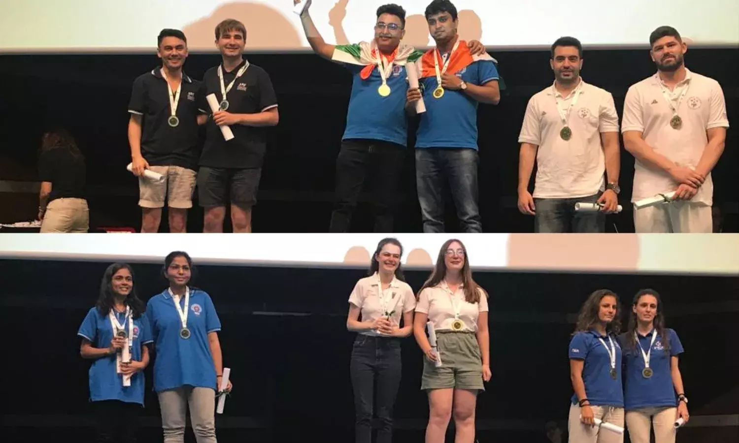 Indian teams on the podium at the World Youth Bridge Championships 2022 (Source: Twitter/SAI Media)