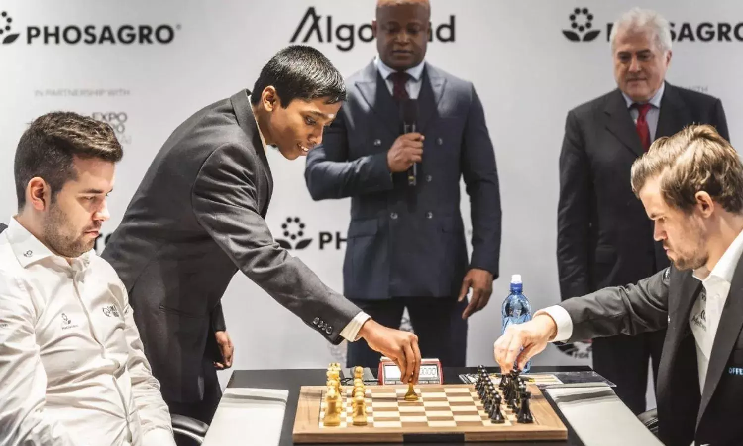 The young Indian Grandmaster (GM) Rameshbabu Praggnanandhha played the first move of the game number 9 in the ongoing Chess World Championships match between Magnus Carlsen and Ian Nepomniachtchi today.