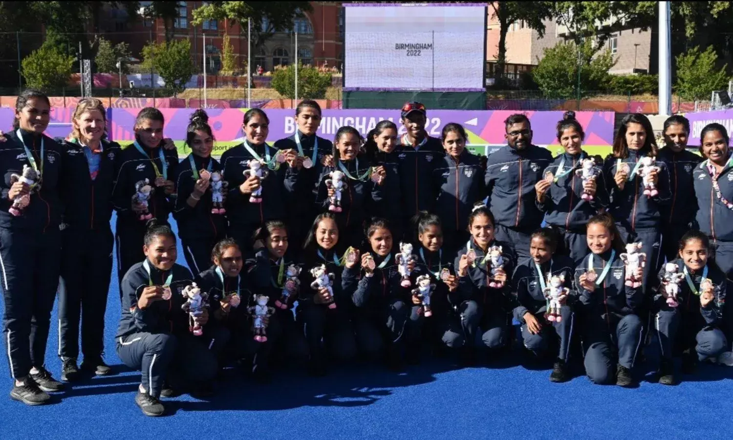 The Indian women's hockey team with their bronze medal from the Birmingham Commonwealth Games 2022 (Source: Hockey India)
