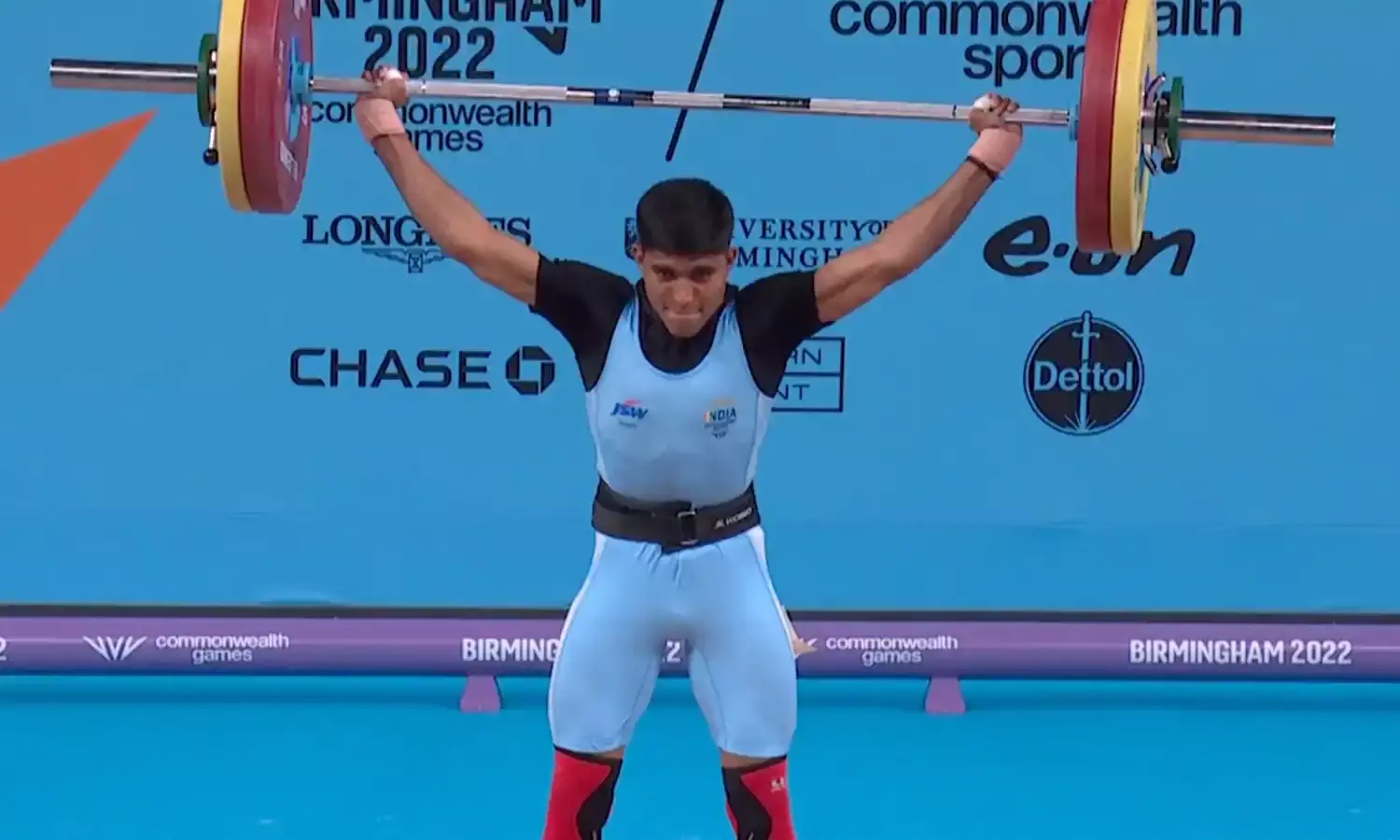 Sanket Sargar in action at the 2022 CWG Weightlifting final (Screenshot)