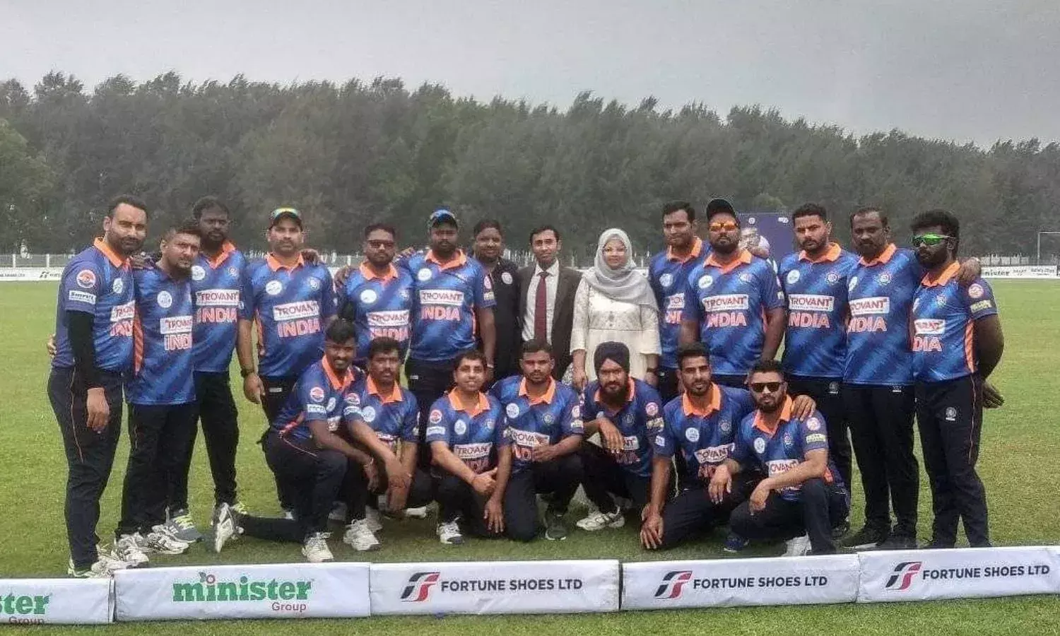 Pradeep Rizal also chipped in with 10 runs in 19 balls. In reply, Sachin (54 not out) gave the team a great start but India was reduced to 45 for 4 at one stage. Tikka (33 not out) then took charge of the situation as he along with Sachin took the team home in the 14th over.
