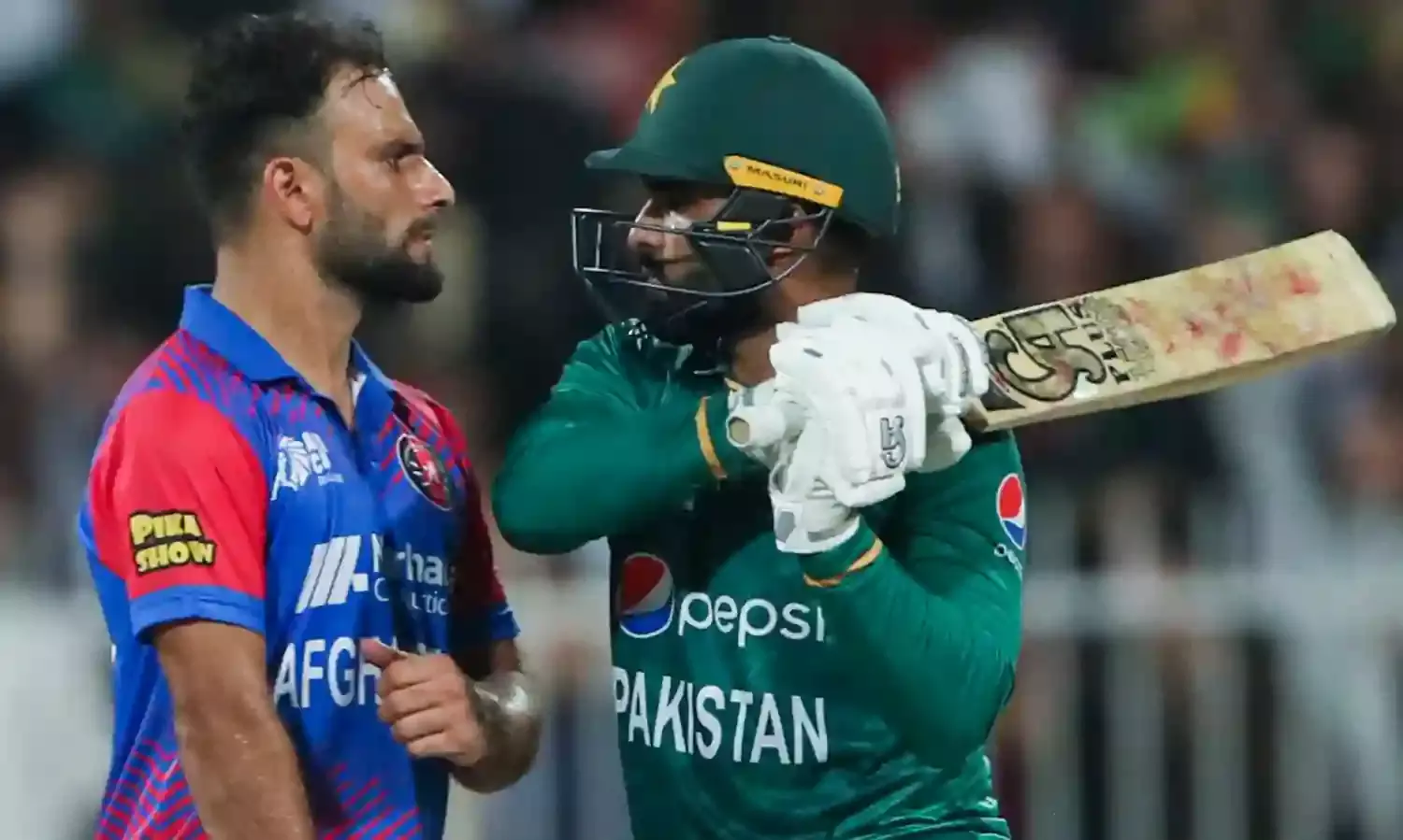 Pakistan's Asif Ali and Afghanistan's Fareed Ahmed in a heated conversation during their Asia Cup 2022 match (ICC)