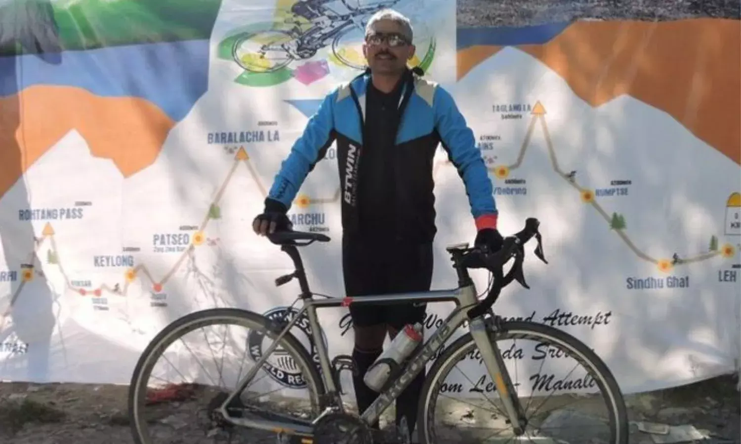 Lieutenant Colonel Sripada Sriram of the Indian army has set a World Record by becoming the fastest man to cycle from Leh to Manali. He covered the 472 km distance in 34 hours and 54 minutes.