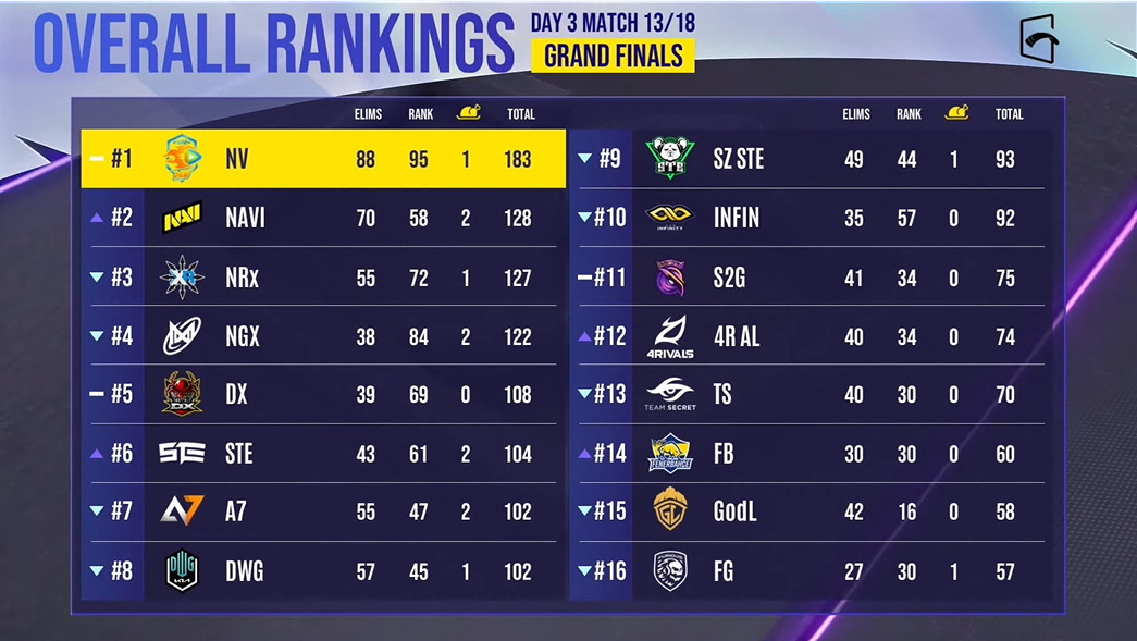 Yet another consistent show from Nova and they extend their lead at the top. GodLike, on the other hand, have dropped to 15th after that wonderful show from Fenerbache.