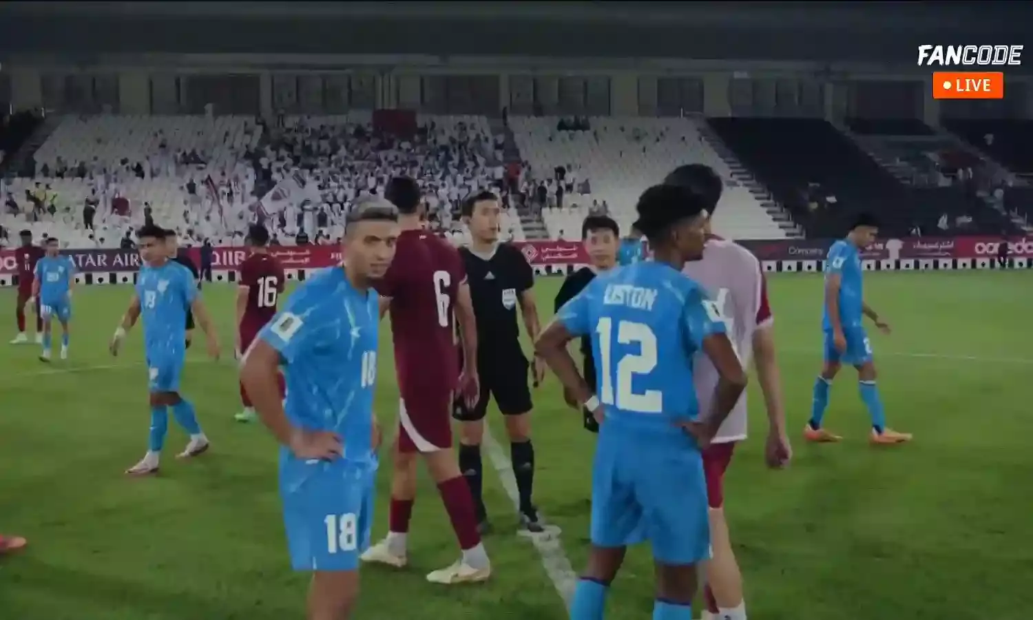 However, controversy struck in the 73rd minute. During a Qatari free-kick, Gurpreet Singh cleared the ball, which clearly rolled out of play. Alhashmi Mohialdin pulled it back in, and Ayman Farahat scored. Despite protests from the Indian players, the referee allowed the goal, leveling the score at 1-1.