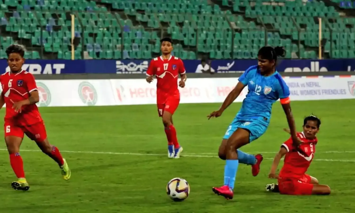 India looked the better side in the first half with striker Bala Devi troubling the Nepal back-line and putting pressure on the defenders. Bala found Sandhiya Ranganathan with a through ball in the opening minutes of the game but the latter was caught in two minds whether to cross or shoot, and ended up doing neither.