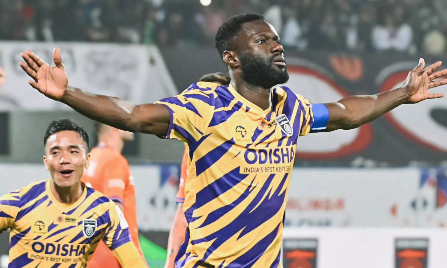 Hosts Odisha FC rode Mourtada Fall’s brace to beat FC Goa 3-2 in a do-or-die Group D match and make it to the semi-finals of the Kalinga Super Cup at the Kalinga Stadium Main Pitch in Bhubaneswar on Monday, January 22, 2024.