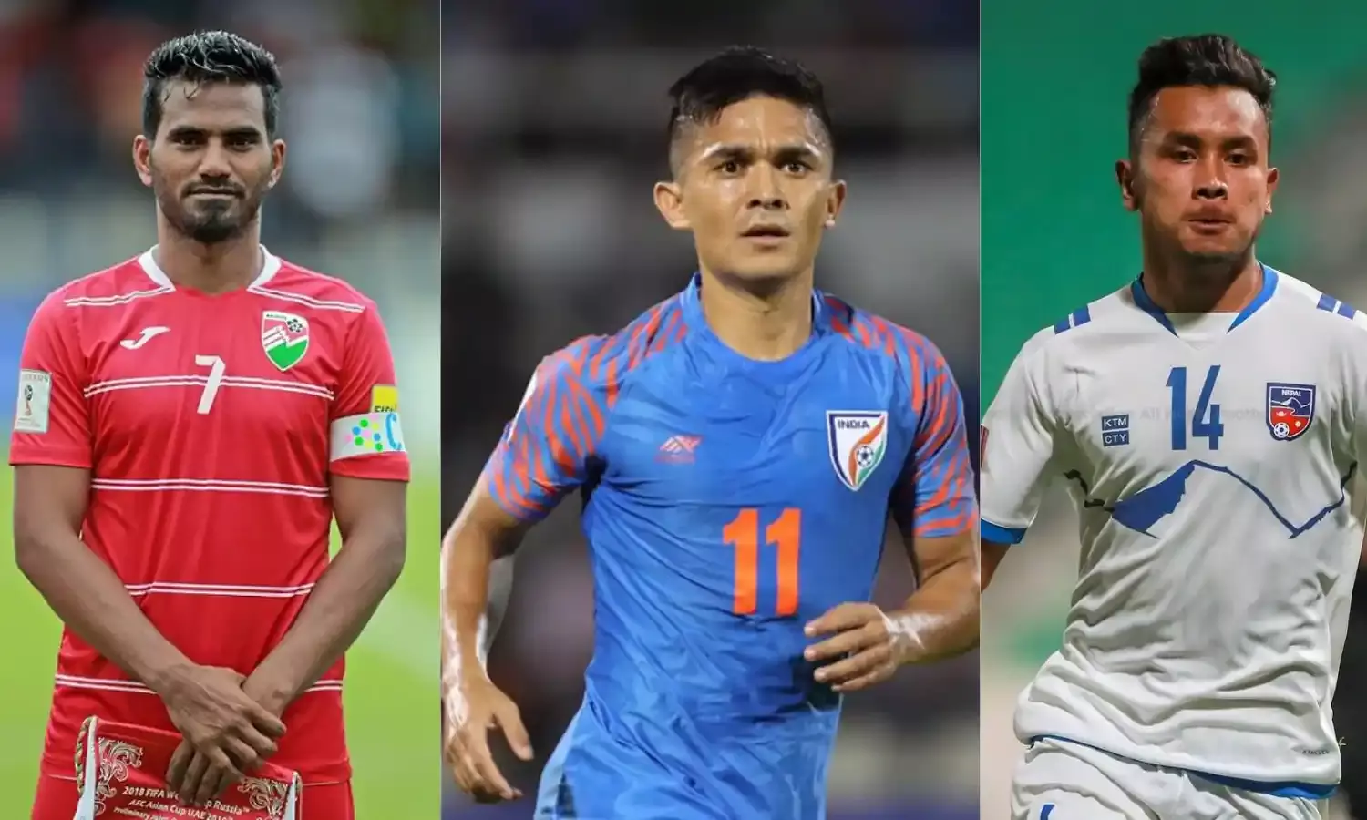 Ali Ashfaq (Maldives), Sunil Chhetri (India) and Anjan Bista (Nepal).