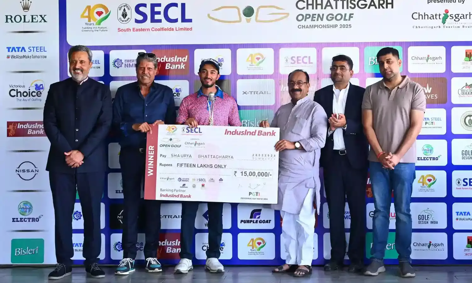 Shaurya Bhattacharya of Delhi stamped his authority with an error-free final round of six-under 63 to register a resounding five-shot victory at a total of 27-under 249 at the INR 1 crore SECL Chhattisgarh Open 2025 presented by Chhattisgarh Tourism played at the magnificent Fairway Golf & Lake Resort in Naya Raipur.