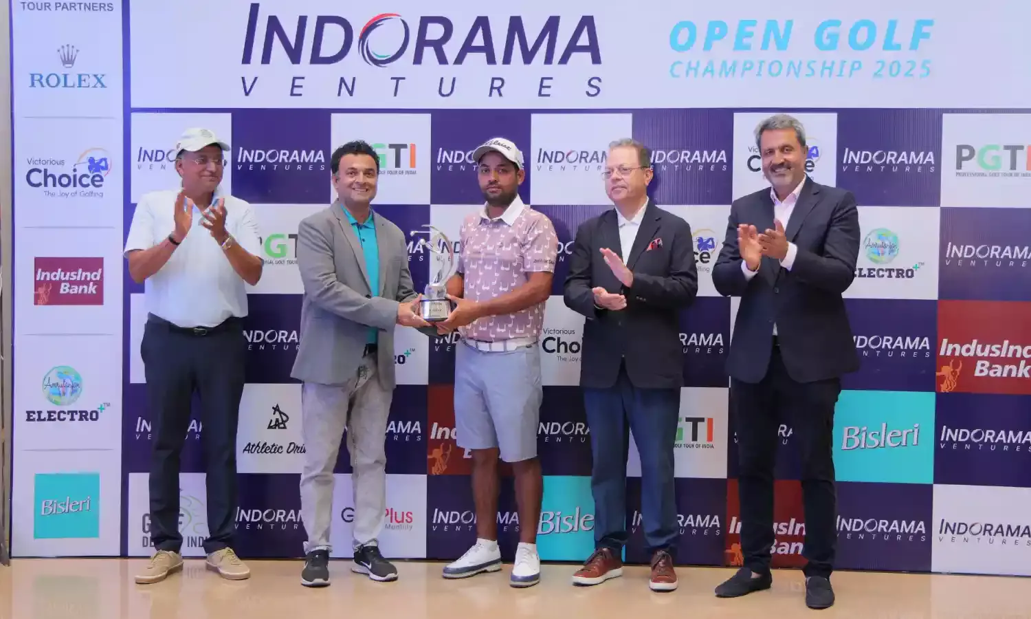 Delhi’s Sachin Baisoya, who began the final day seven shots behind the lead in tied fifth place, registered a classic come-from-behind victory as he trumped Pune’s Udayan Mane in a playoff after posting the day’s best score of four-under 68 to lift the trophy at the INR 2 crore Indorama Ventures Open Golf Championship 2025 played at the Kalhaar Blues & Greens Golf Club in Ahmedabad.