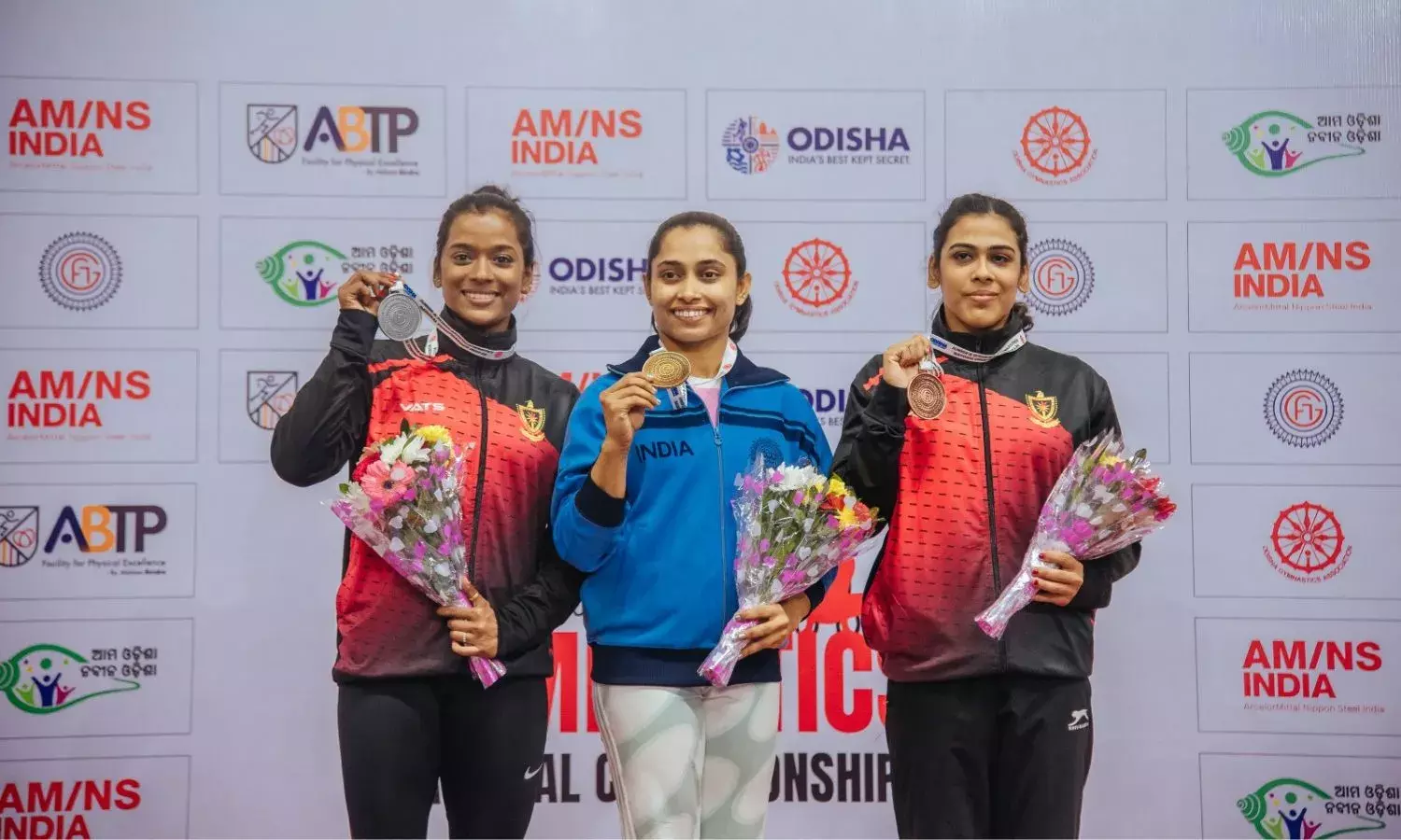 In Vault, Railways won two medals- Pranati Nayak recorded 13.067 points to clinch Gold, while her teammate Protistha Samanta secured Bronze, registering 12.350 points. Dipa Karmakar, who represented Tripura, finished in second position with 12.584 points.