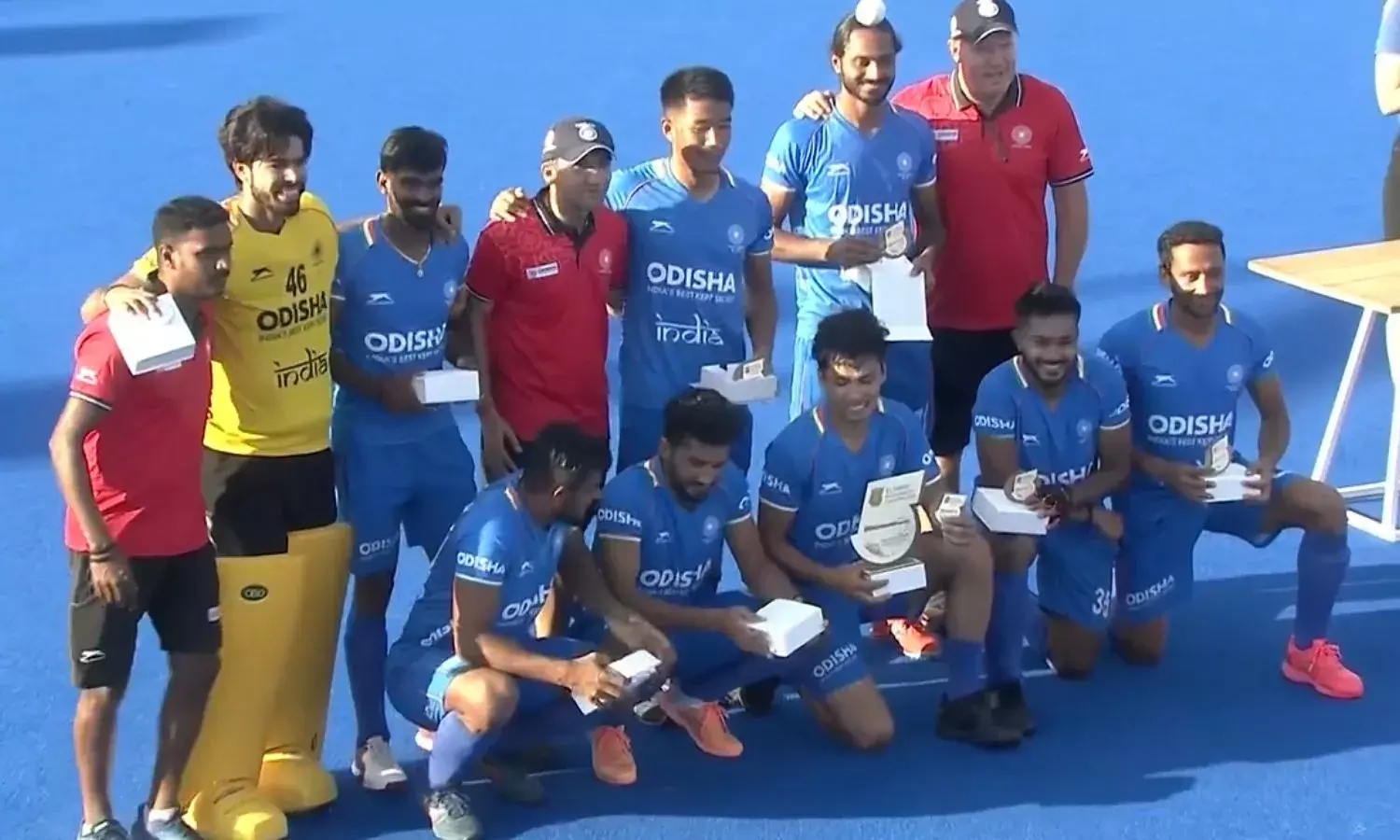 The Indian team with the inaugural FIH Hockey 5s Trophy