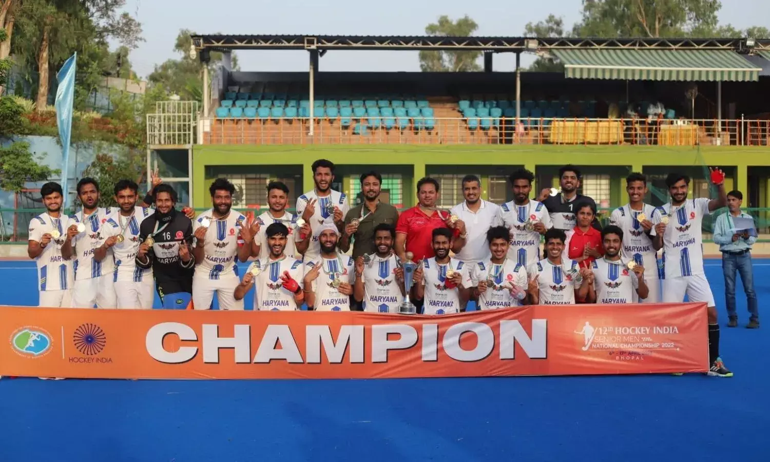 Hockey Haryana were crowned as the Champions of the 12th Hockey India Senior Men National Championship 2022 in Bhopal, Madhya Pradesh with a thrilling 1-1 (3-1 SO) victory over Hockey Unit Of Tamil Nadu in the Final of the competition.