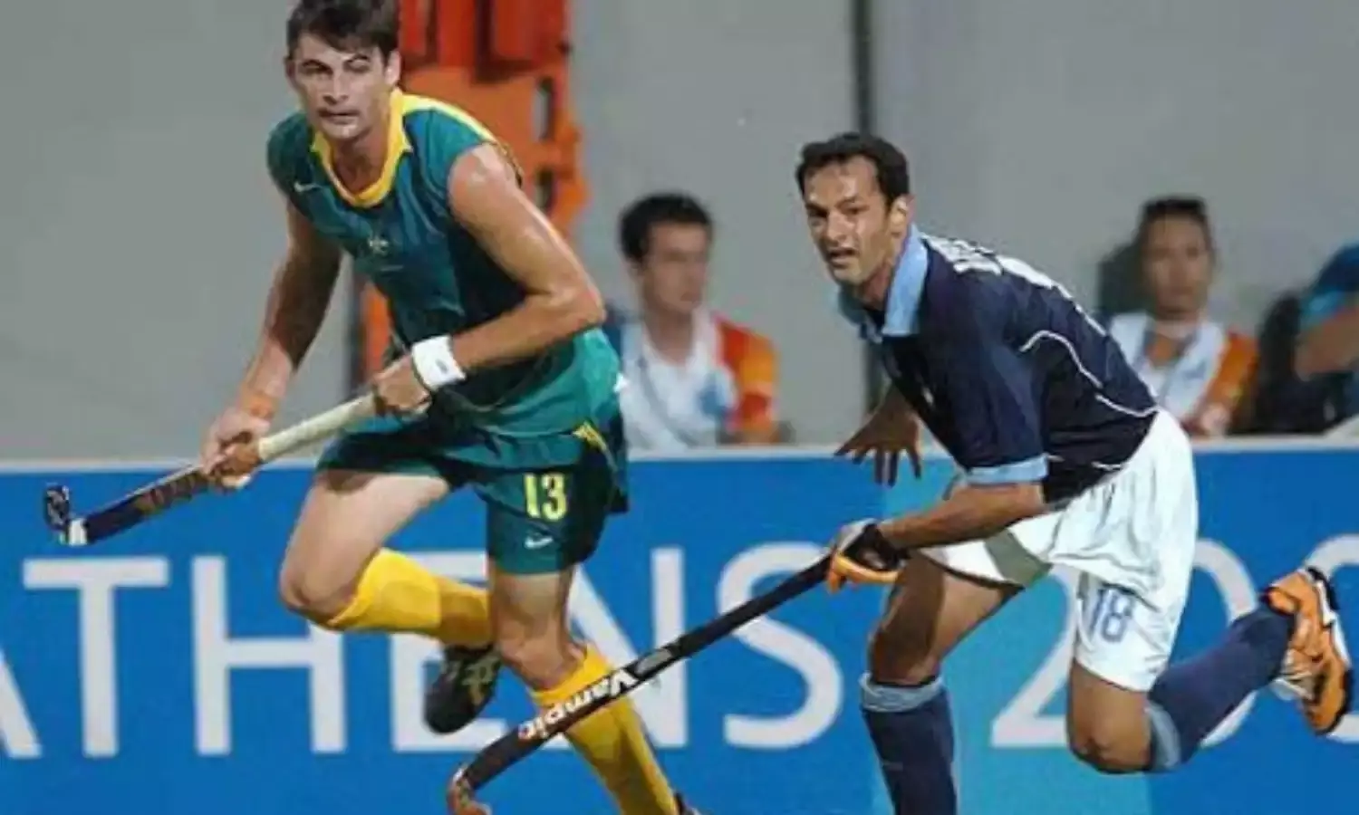 Viren Rasquinha in action in the 2006 Hockey World Cup. (source: Viren Rasquinha)