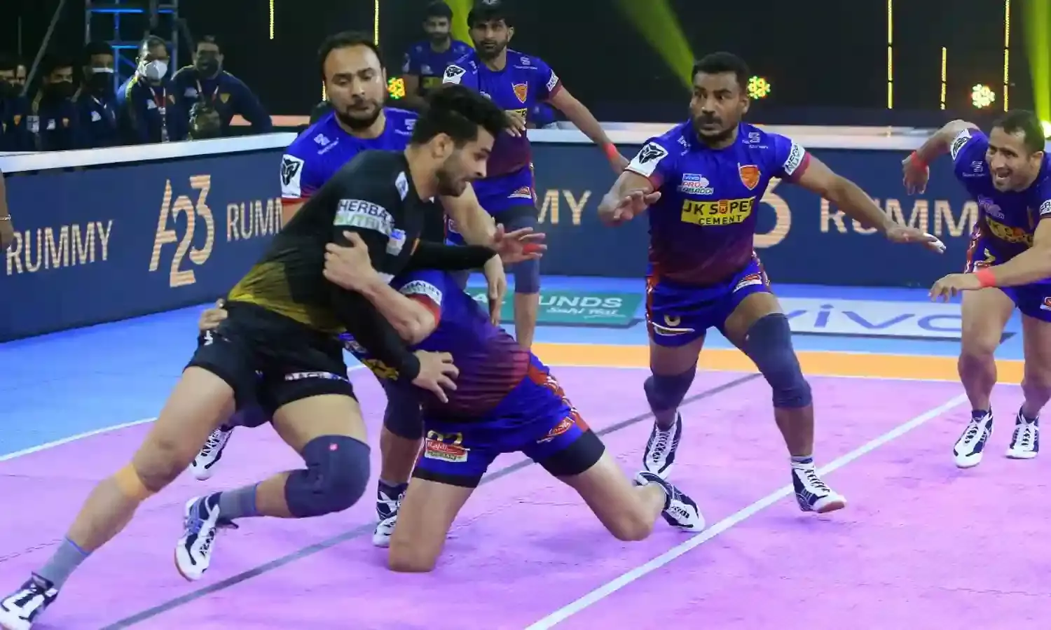 A collective effort from Dabang Delhi K.C. helped them beat Telugu Titans 40-32 in match 128 of PKL 2021.