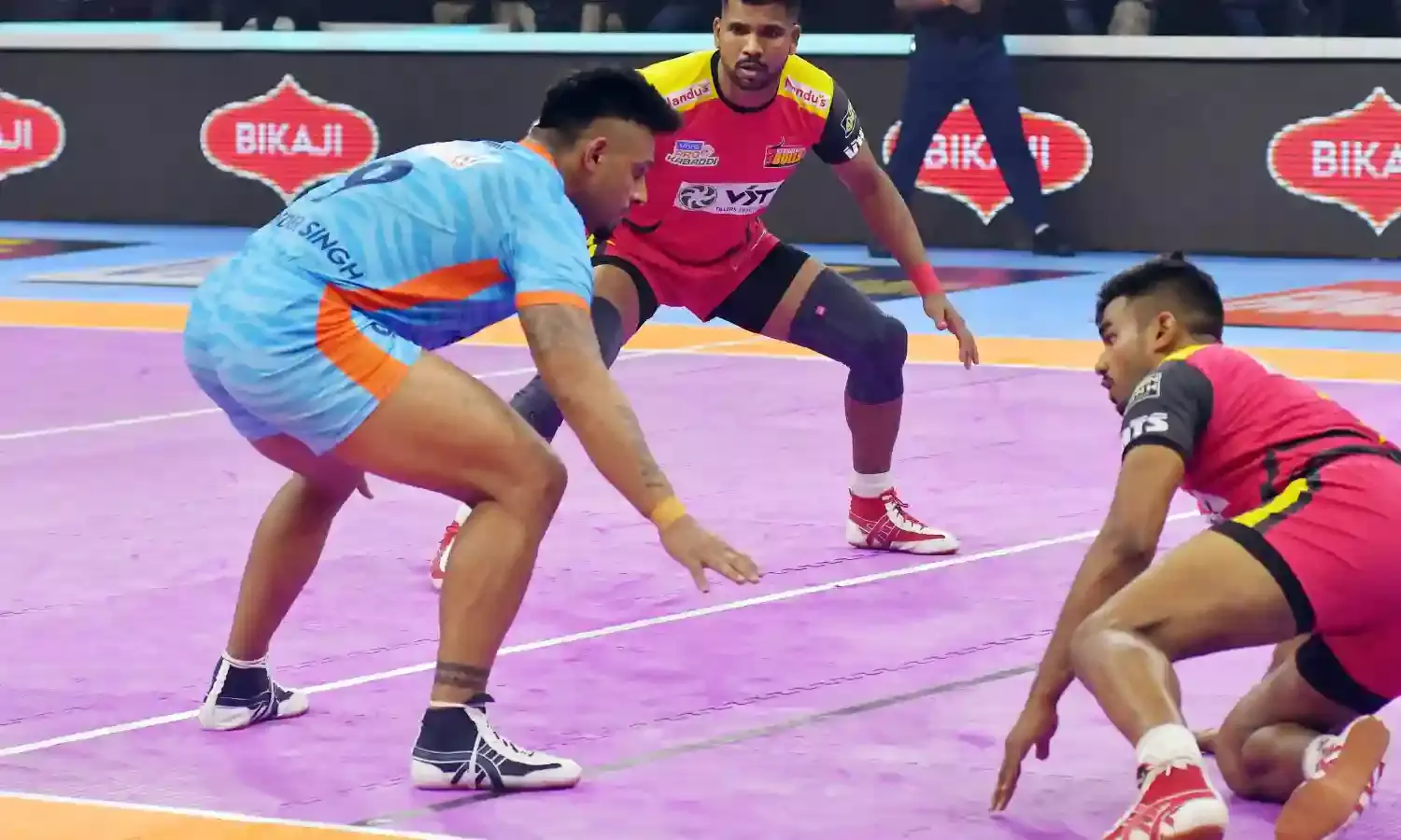 The Bulls though bounced back through Bharat and Neeraj Narwal surged into the lead at 22-18 at the end of the first half.