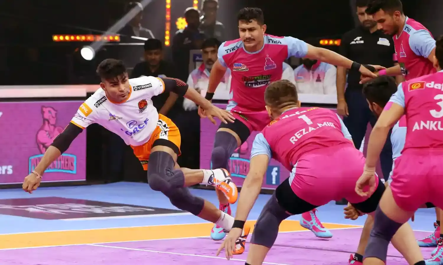 Arjun Deshwal picked up a few touchpoints as the Jaipur Pink Panthers took the lead at 6-3 in the 6th minute. However, Sombir tackled Deshwal and Mohit Goyat pulled off a raid in quick succession to help their team stay in the game at 6-8 in the 9th minute.