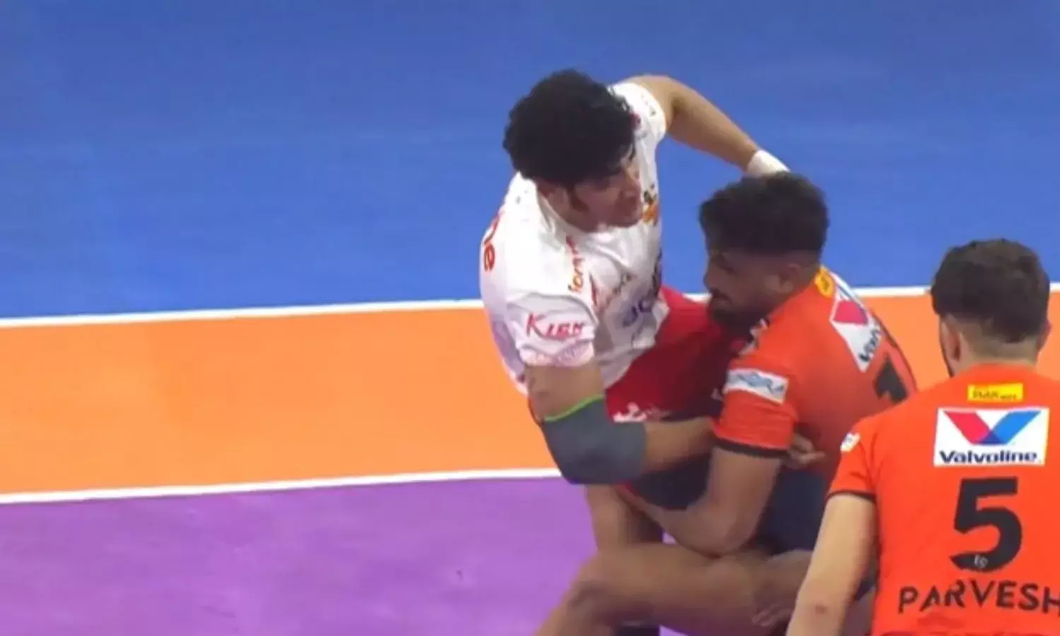 U Mumba captain Sunil Kumar came up with a stunning solo tackle against his Gujarat Giants counterpart Mohammadreza Shadloui as U Mumba registered a win in the tiebreaks in the 2025 Pro Kabaddi League on Saturday.