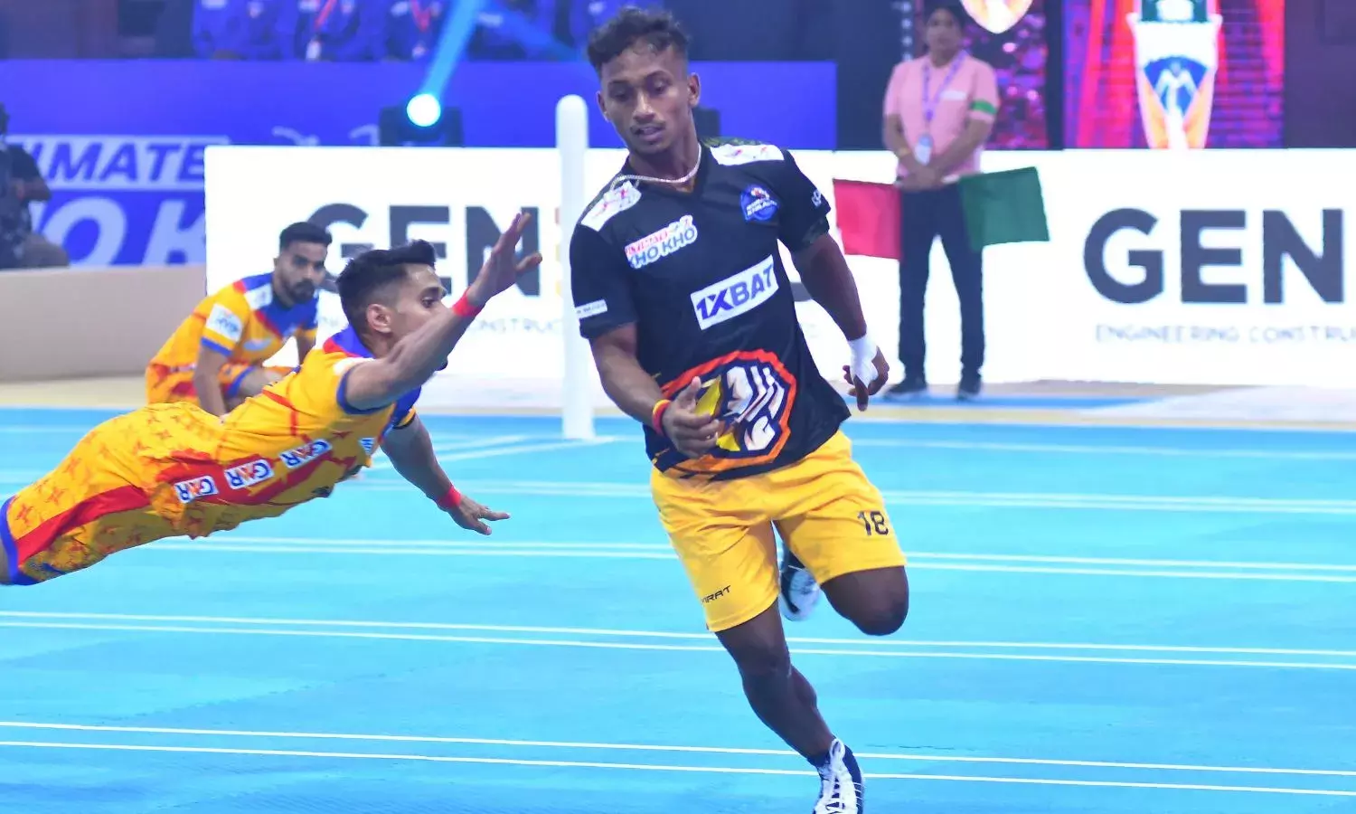 Mumbai Khiladi's Subhasis Santra (in black) during the match between Mumbai Khiladis and Telugu Yoddhas