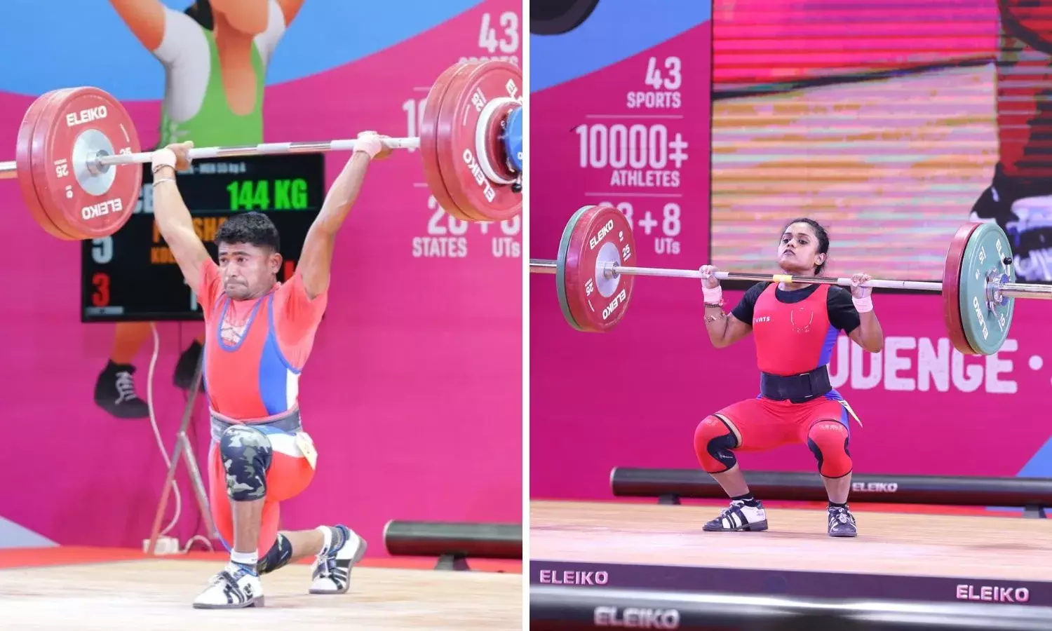 Prashant Koli (Left) and Dipali Gursale (Right) broke the national records in weightlifting at the 37th National Games 2023 in Goa.