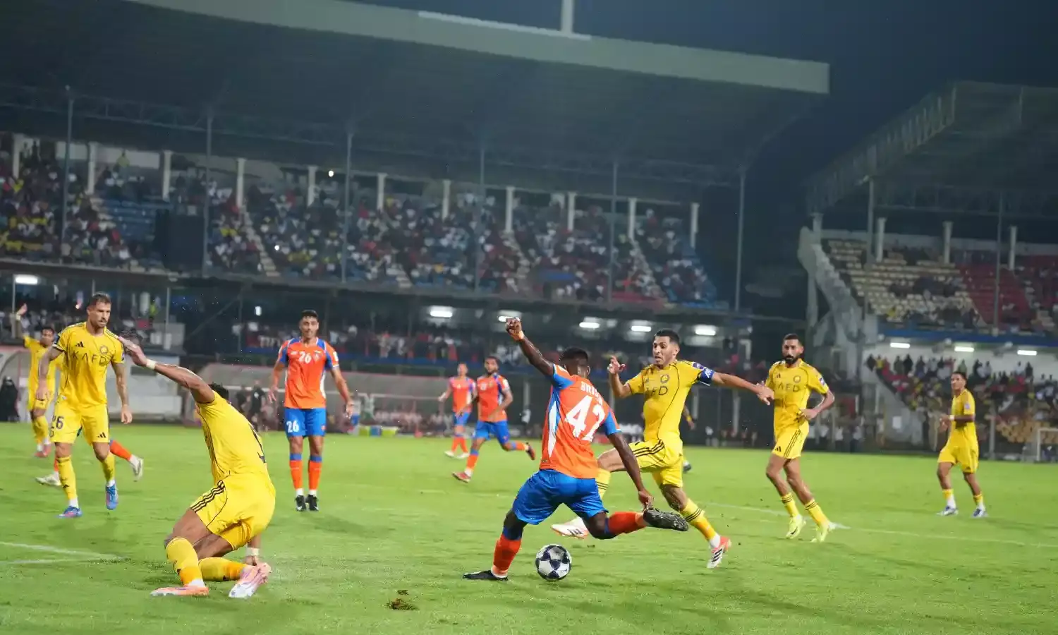 In the 41st minute, Brison Fernandes broke through Al Nassr’s composure with a finish born of instinct and heart. (Photo credit: FC Goa)