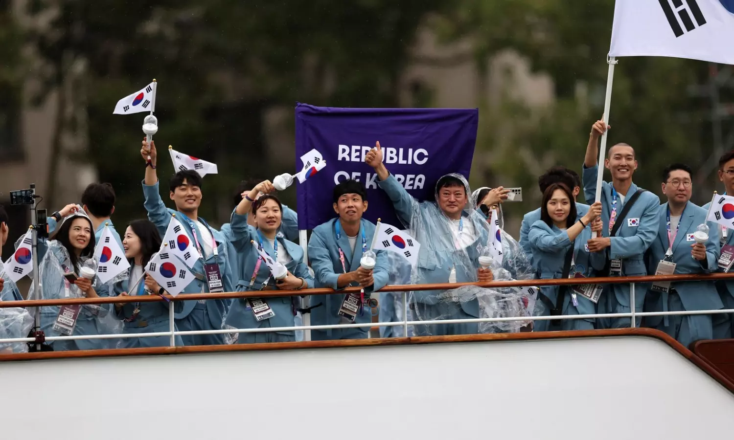Team South Korea during the Athletes' Parade at the Seine River. (Photo credit: X)