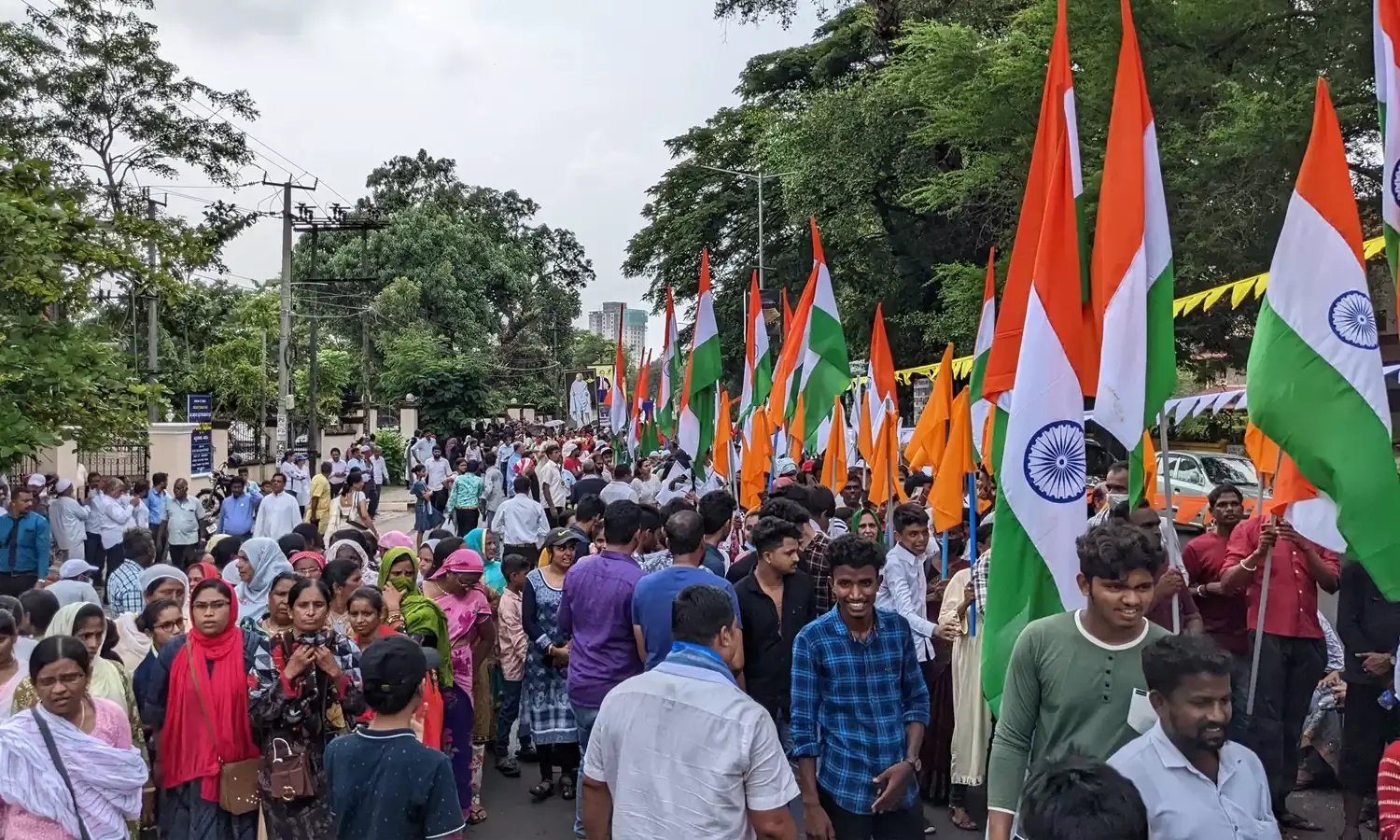The march that led was taken out from the Hutatma Chowk in Ajjarkad to the Christian School in Mission Compound and saw people from all faiths taking part in it. The march was led by the Kambala buffalo racers from Tulu Nadu. Kambala is an annual buffalo race held in the coastal districts of Dakshina Kannada and Udupi. It's a buffalo race where the farmer runs with the buffalo pulling on a harness or cord and whiplashes them to generate speed. The track is a slushy paddy field and farmers race each other to compete for the top prize. The Kambala race became a topic of discussion when one of the racers, Srinivasa Gowda made headlines for being India's Usain Bolt after he ran a distance of 142.5m in 13.62 seconds.