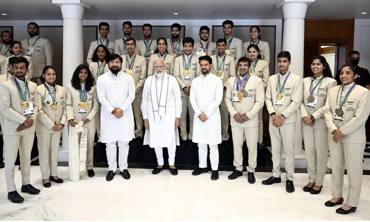 Prime Minister Narendra Modi on Saturday hosted India's Deaflympics contingent which produced its best-ever performance in the event held in Caxias do Sul, Brazil, from May 1 to 15.