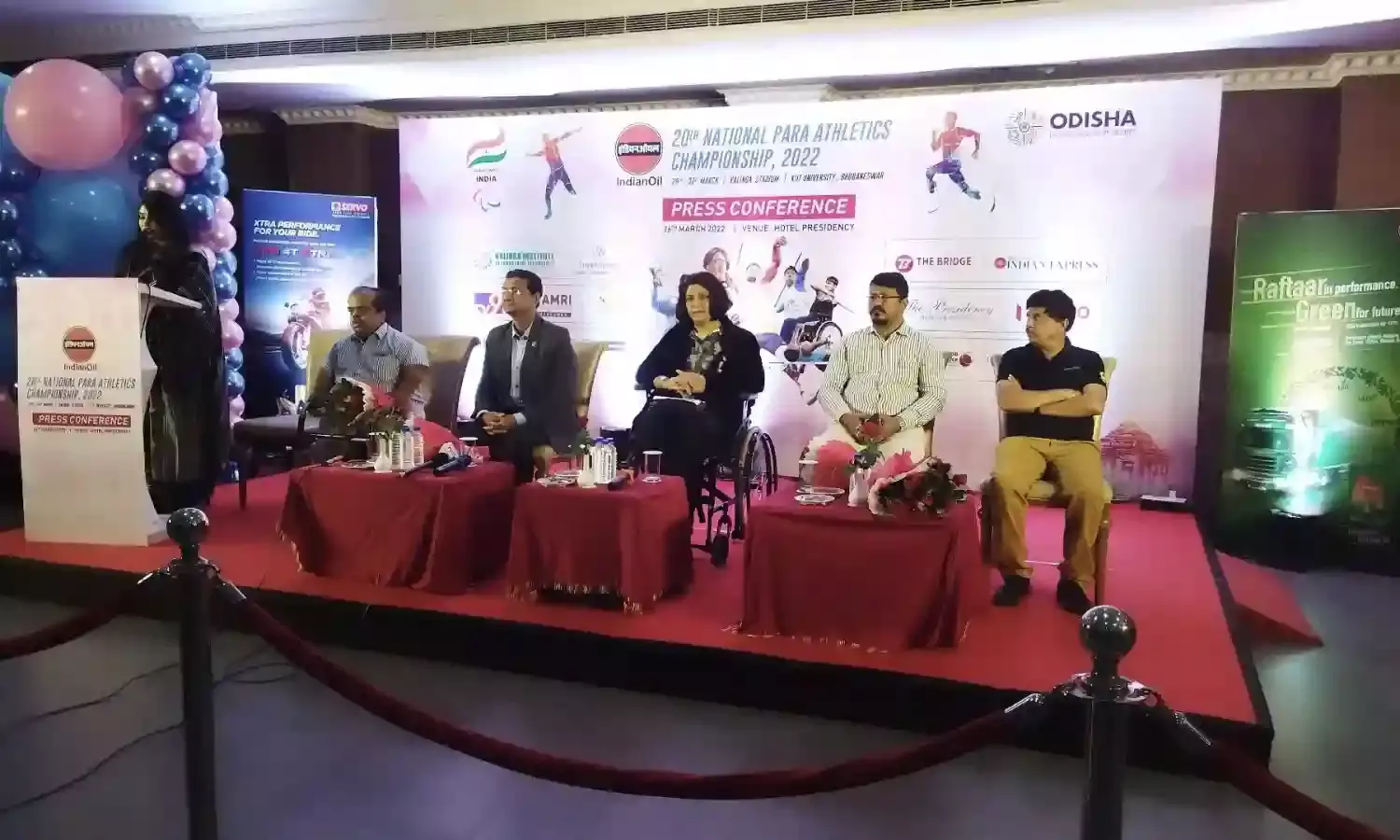 The National Para Athletics Championship 2022 media briefing took place today in the presence of Ms. Deepa Malik, First Woman President of Paralympic Committee of India, Mr. Bijayananda Nayak Jt.Secretary to Government of Odisha & Kalinga Stadium Administrator, Dr Uttiya Bhattacharya, ED Corporate Communication, IndianOil, Mr. Satyanarayan, Chairman Para Athletics and Mr. Kamla Kanta Ratha, President of Para Sports Association of Odisha.