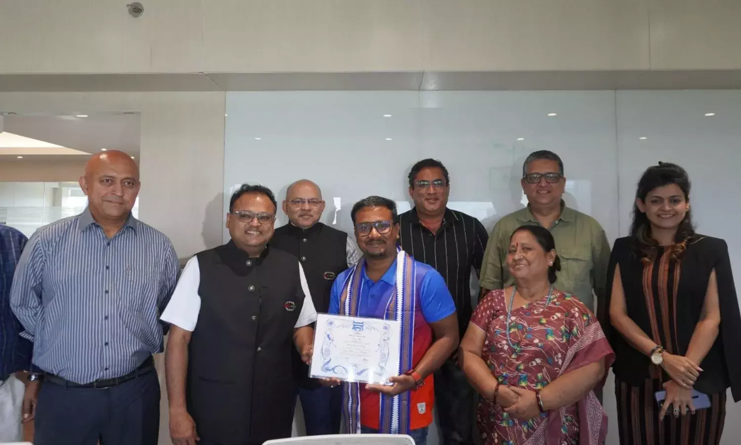 Rimo Shah (in the middle) posing for a photograph with Rahul Todi, Managing Director of Shrachi Group, and others. (Photo credit: Shrachi Group)