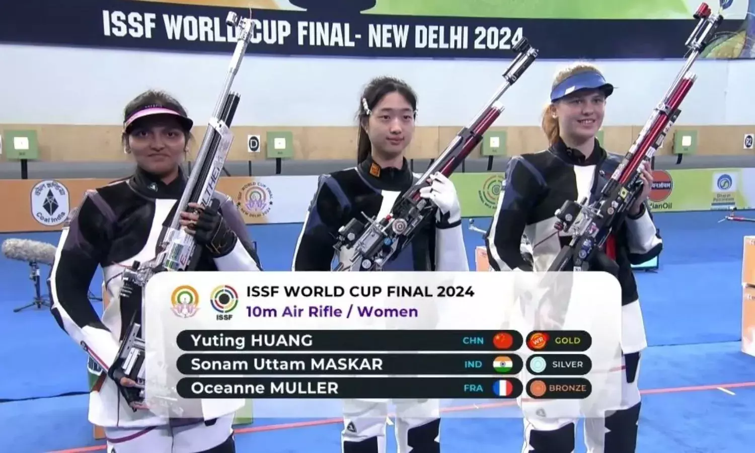 India's Sonam Maskar won silver in the women's 10m air rifle category at the ISSF World Cup Finals. (Photo Credit:X)