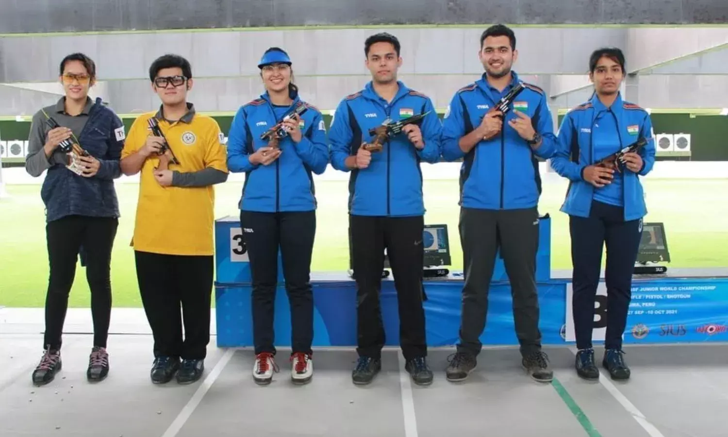 Indian Pistol Mixed Team Gold and Bronze medal winners (Source: SAI/Twitter)