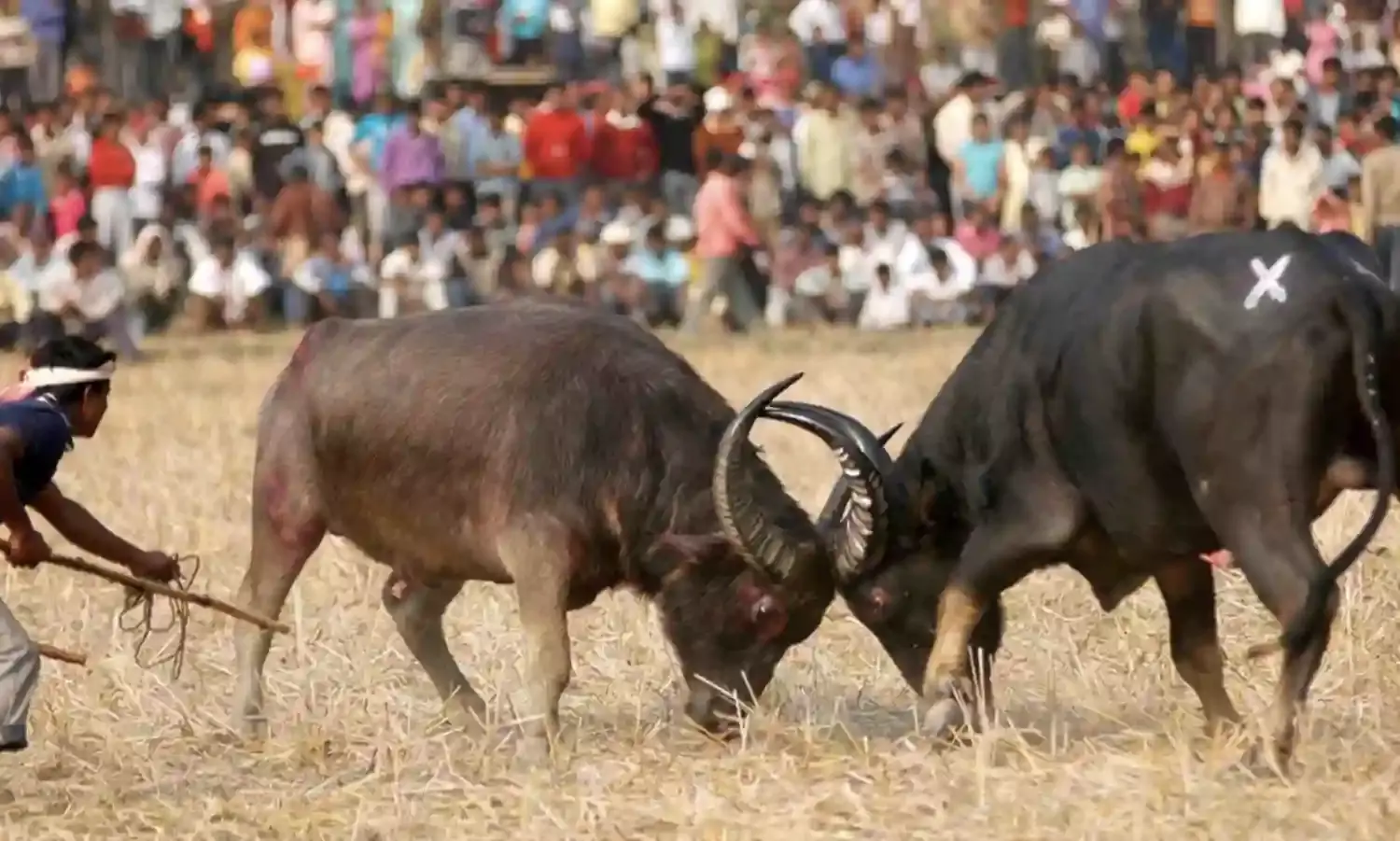 Traditional Buffalo fight in progress on the occasion of "Bhogali Bihu" festival (Source: Nitin Trivedi:Facebook)