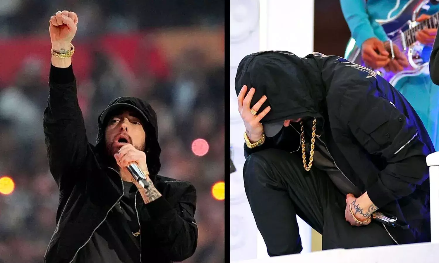 However, in complete disregard of that, Eminem went on to kneel after performing 'Lose Yourself' and before Dr Dre played the piano introduction to the next and final song at the LA Rams' SoFi Stadium in Inglewood, California.
