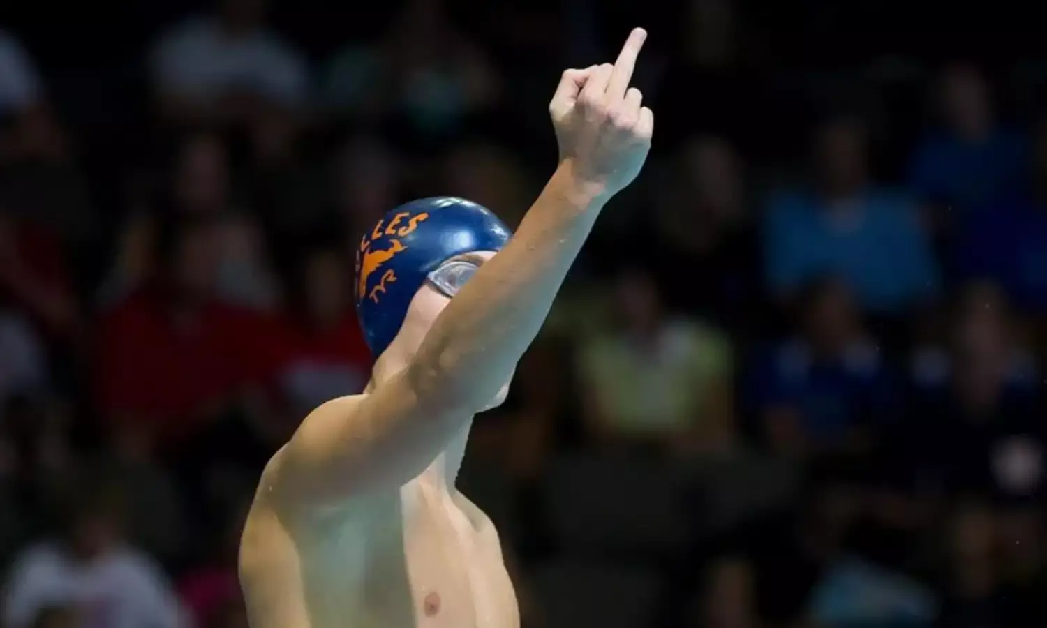 At the Speedo junior Championships in the USA, 17 year old Santo was caught off guard when the camera filmed him showing the middle finger. It was meant for his dad but the issue spiralled into a major breach of sporting integrity and Santo was forced to state a public apology in that regard.