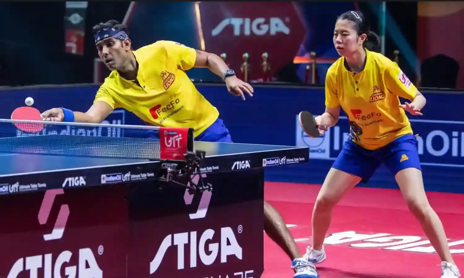 Achanta Sharath Kamal and Yangzi Liu in action for Chennai Lions (UTT)