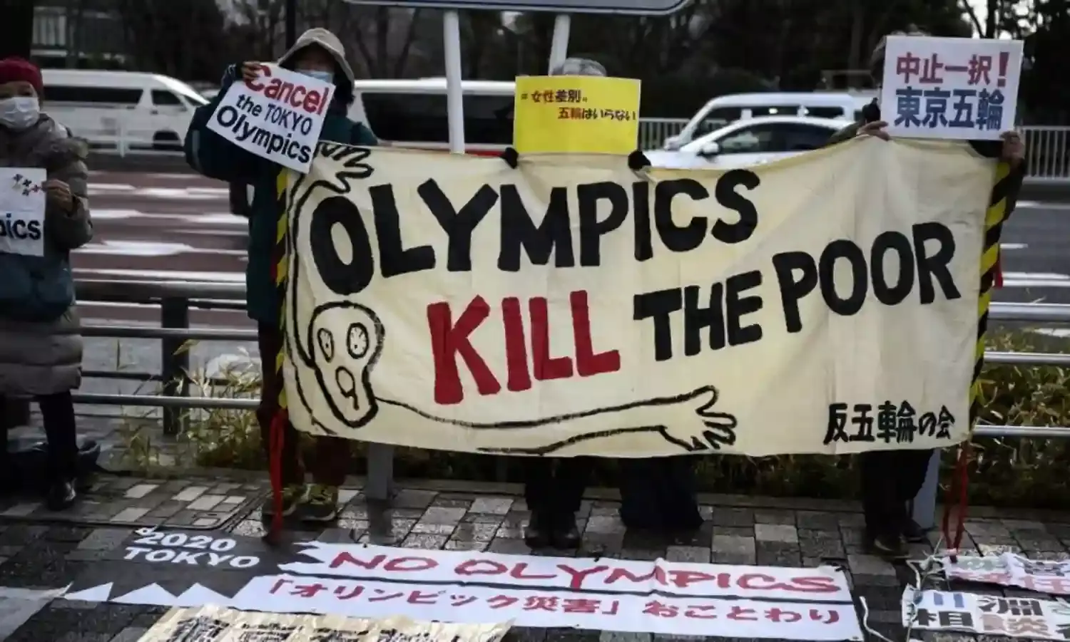 A full-page newspaper ad says Japanese will be "killed by politics" because the government is forcing them to endure the pandemic without vaccines. More than 300,000 people have signed a petition calling for the Tokyo Olympics to be cancelled.